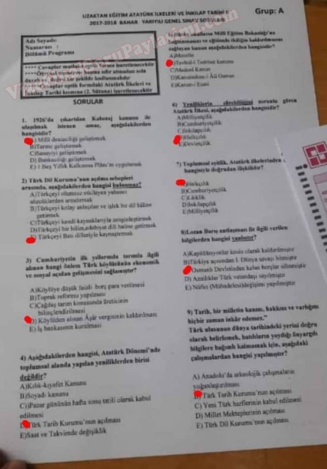 Atatürk İlkeleri ve İnkilap Tarihi -1 Final Soruları - Uzaktan Eğitim 3-01-2018, 17:31