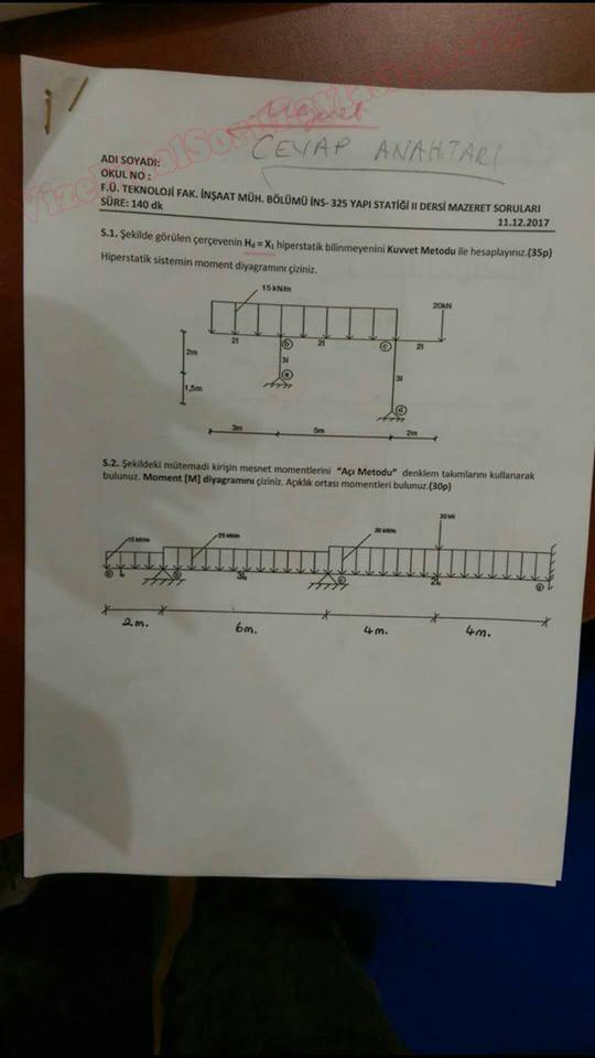 Yapı Statiği -2 Vize Soruları 17-05-2015, 16:18