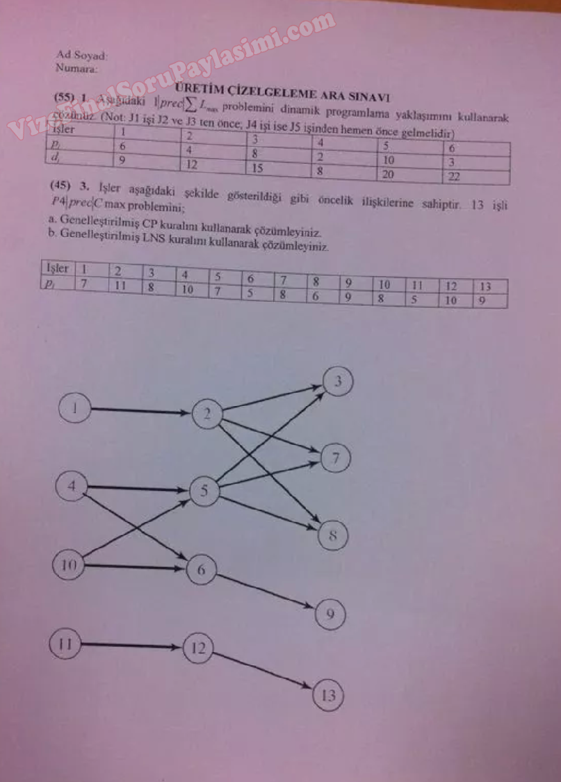 Sıralama Ve Çizelgeleme Vize Soruları Ve Çözümleri 7-07-2015, 14:56