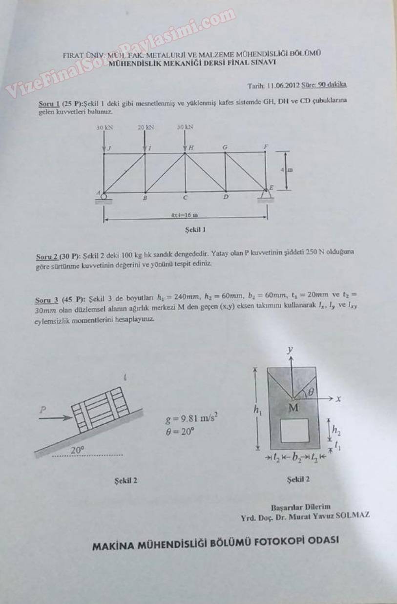 Mühendislik Mekaniği Vize Soruları Ve Cevapları-2012 18-02-2015, 22:11