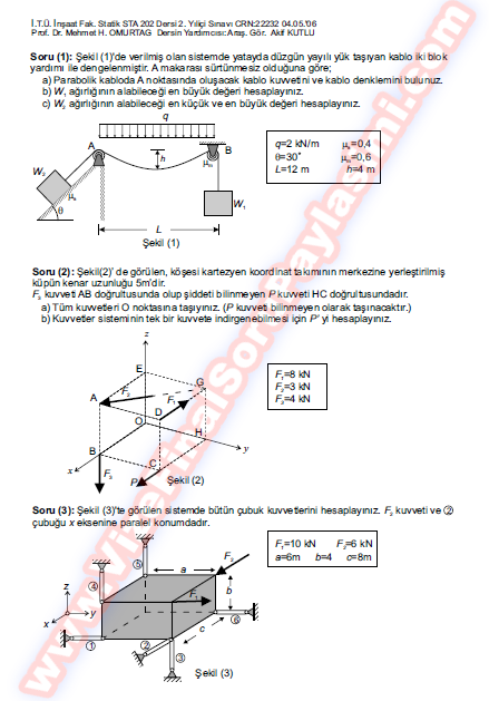 Vize ve Final Soruları / İstanbul Teknik Üniversitesi / Statik