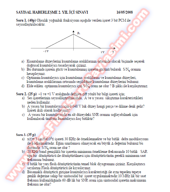 Sayısal Haberleşme Vize Soruları Ve Çözümleri - 16.05.2008