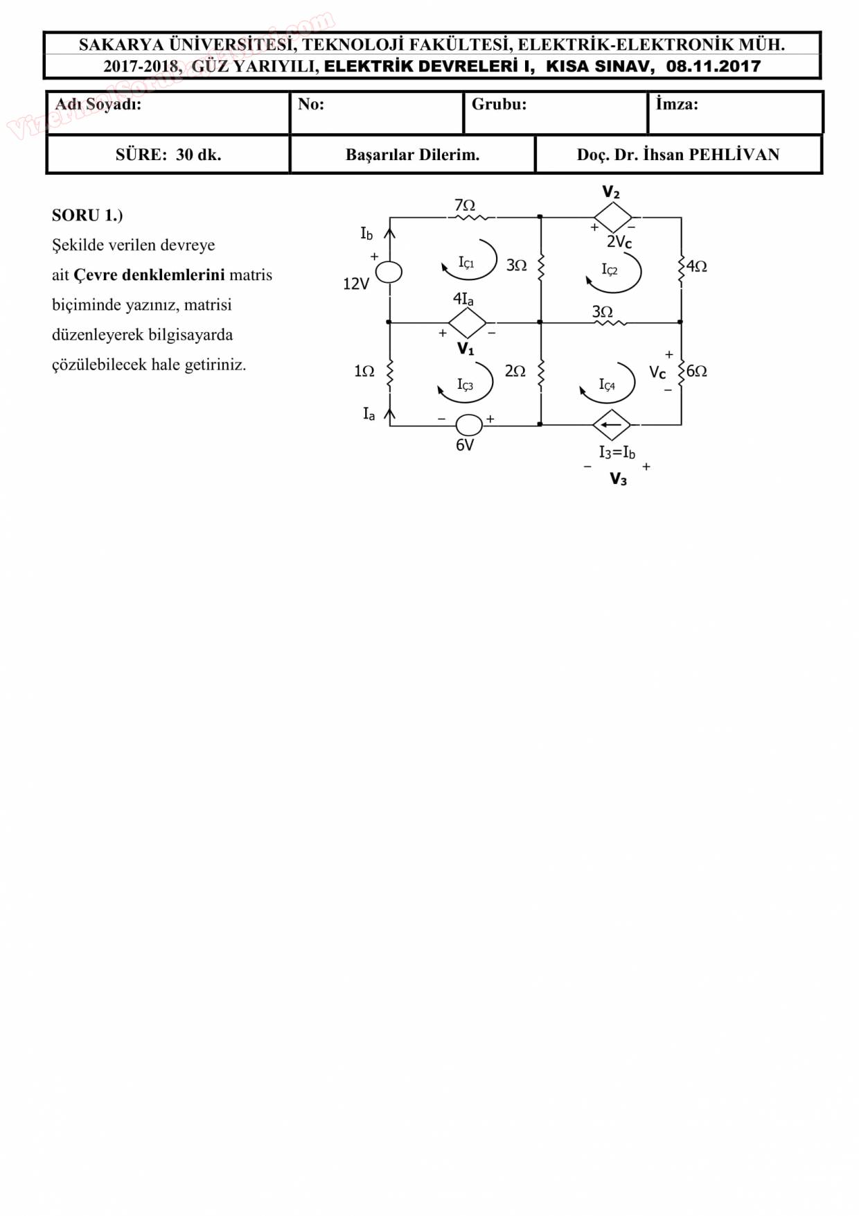 Elektrik devreleri 1 kısa sınav 15-11-2019, 18:02