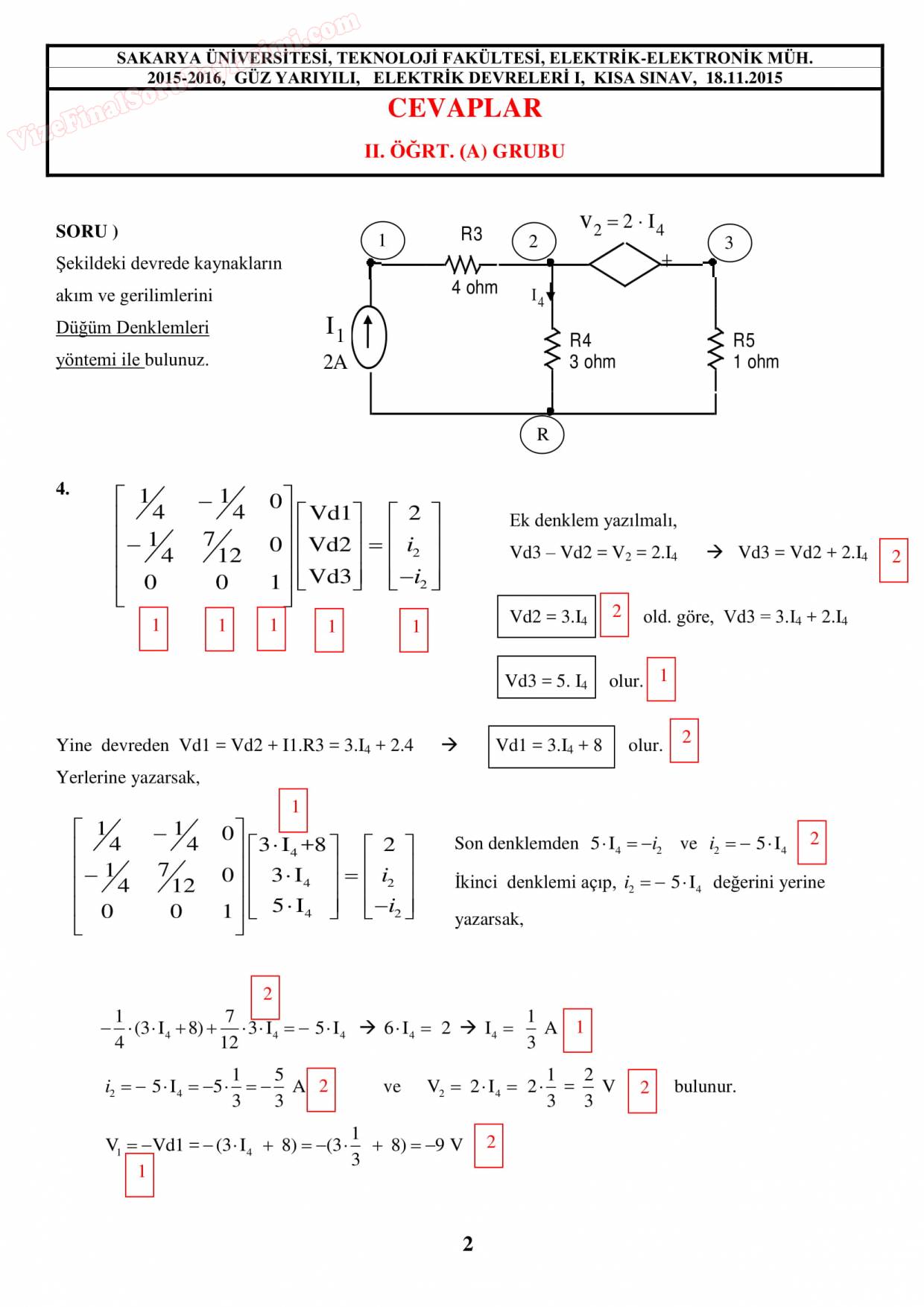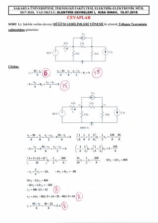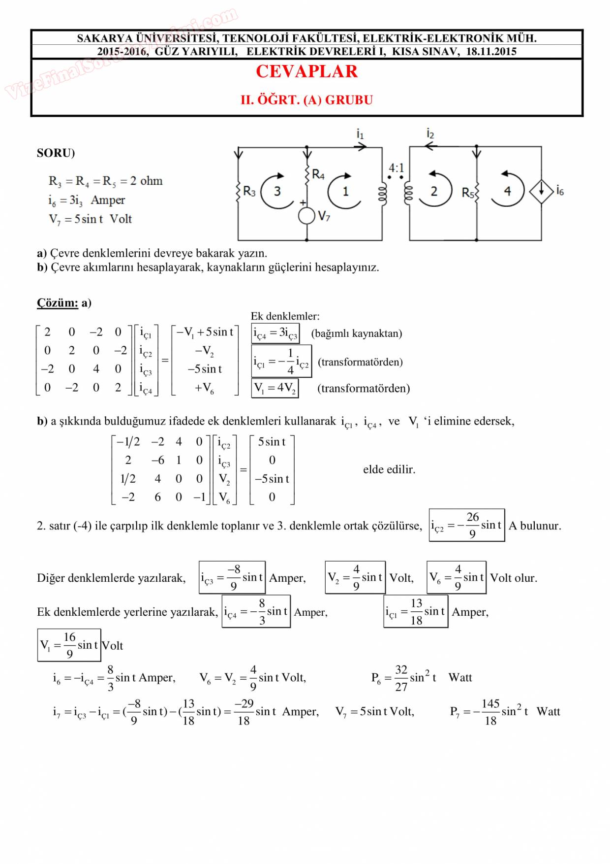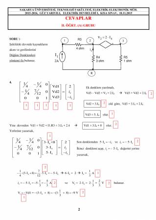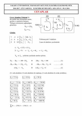 Elektrik devreleri 1 kısa sınav Soruları ve Çözümleri 15-11-2019, 22:50