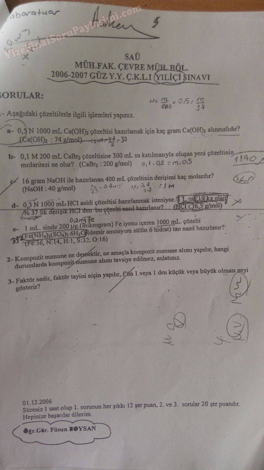Çevre Kimyası Laboratuvarı-1 Vize Soruları 25-03-2015, 00:04