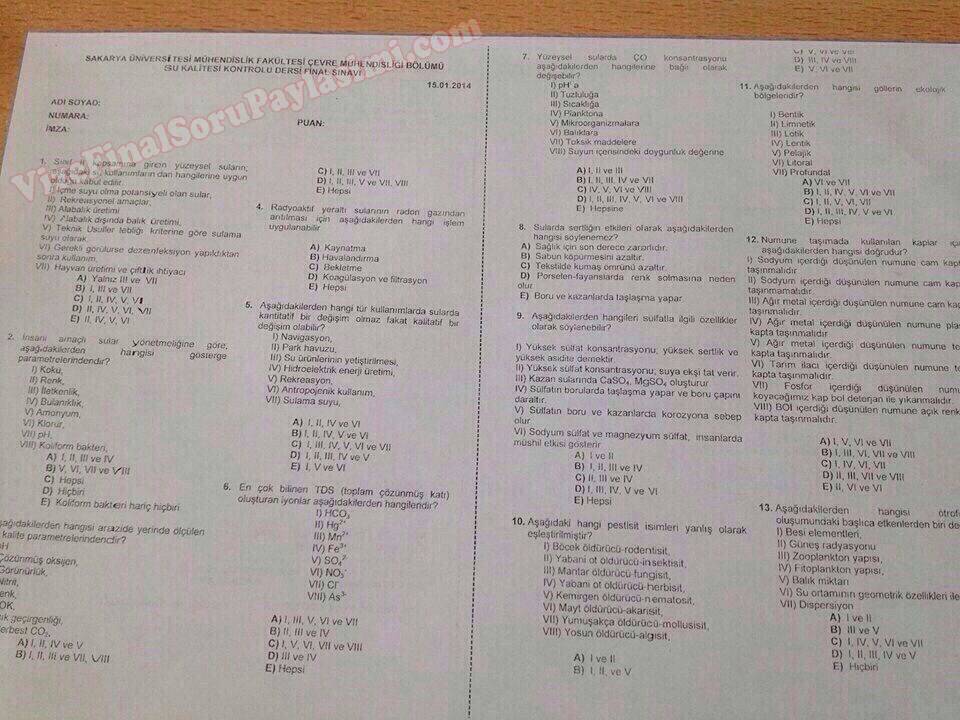 Su Kalitesi ve Kirliliği Dersi Final Soruları - 2016 17-03-2016, 20:59