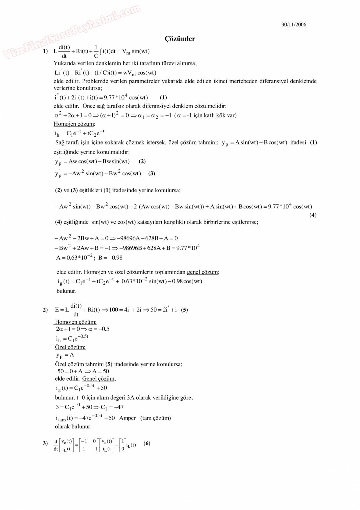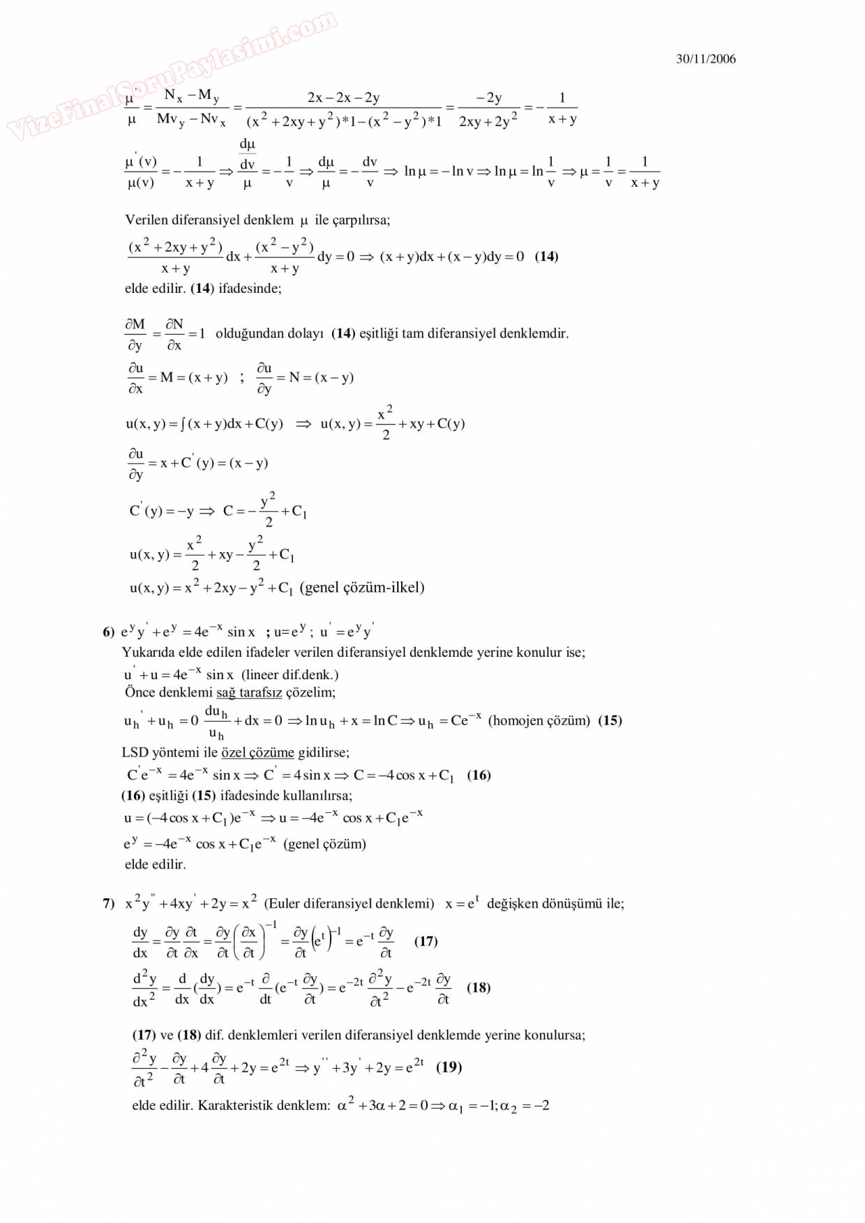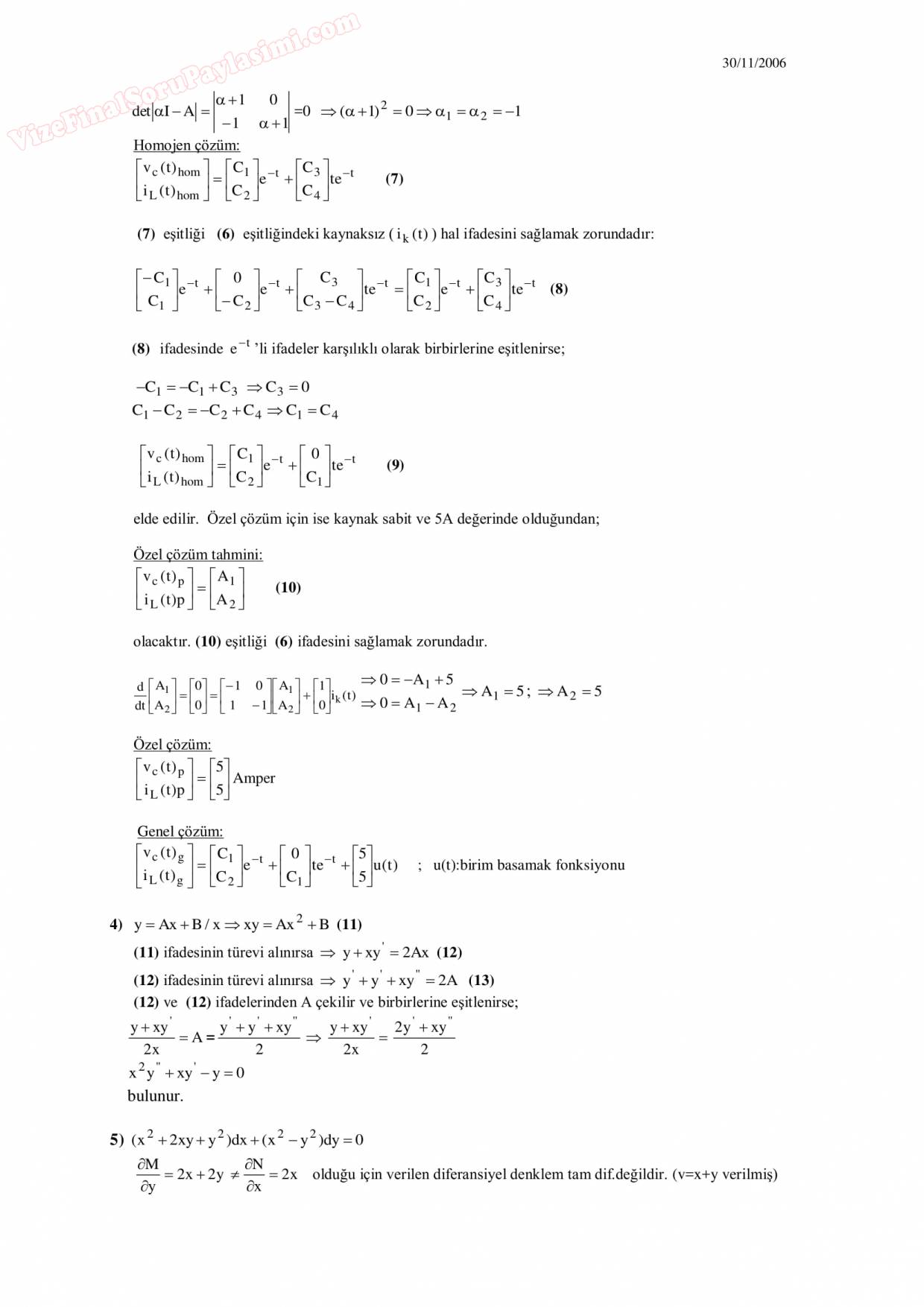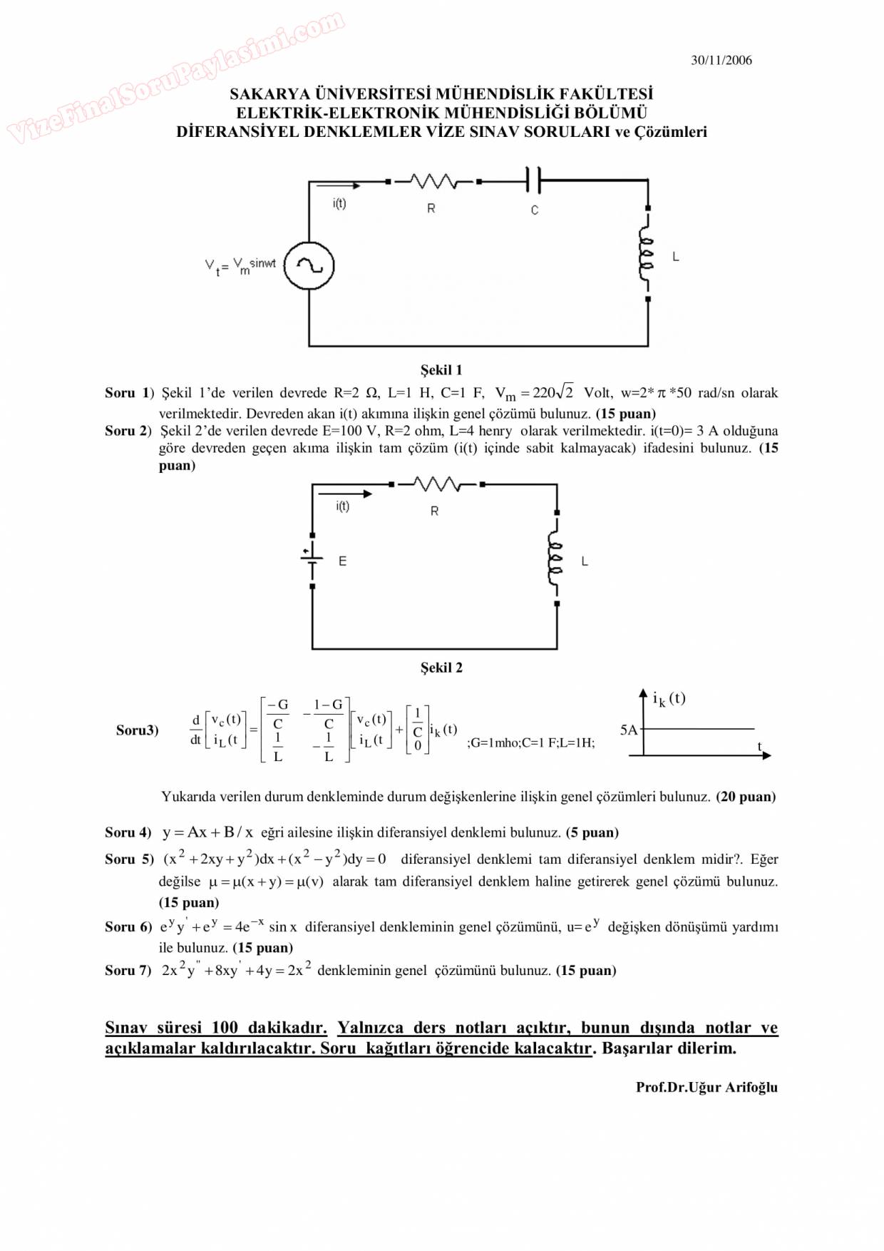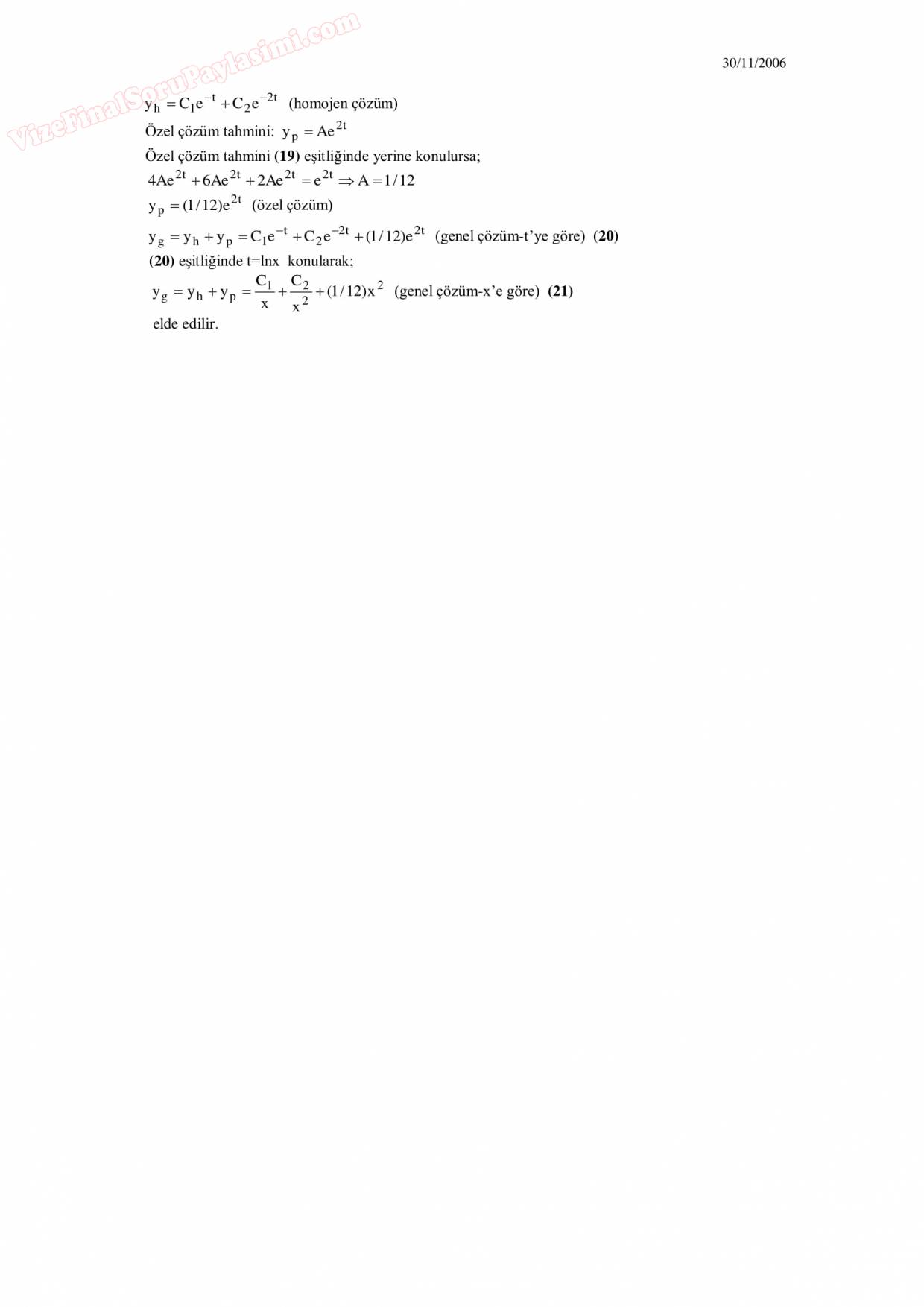 Vize ve Final Soruları / Sakarya Üniversitesi / Diferansiyel Denklemler