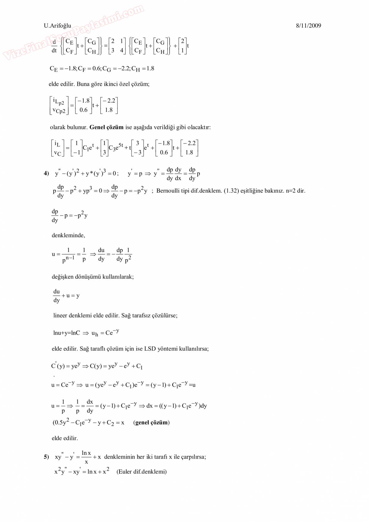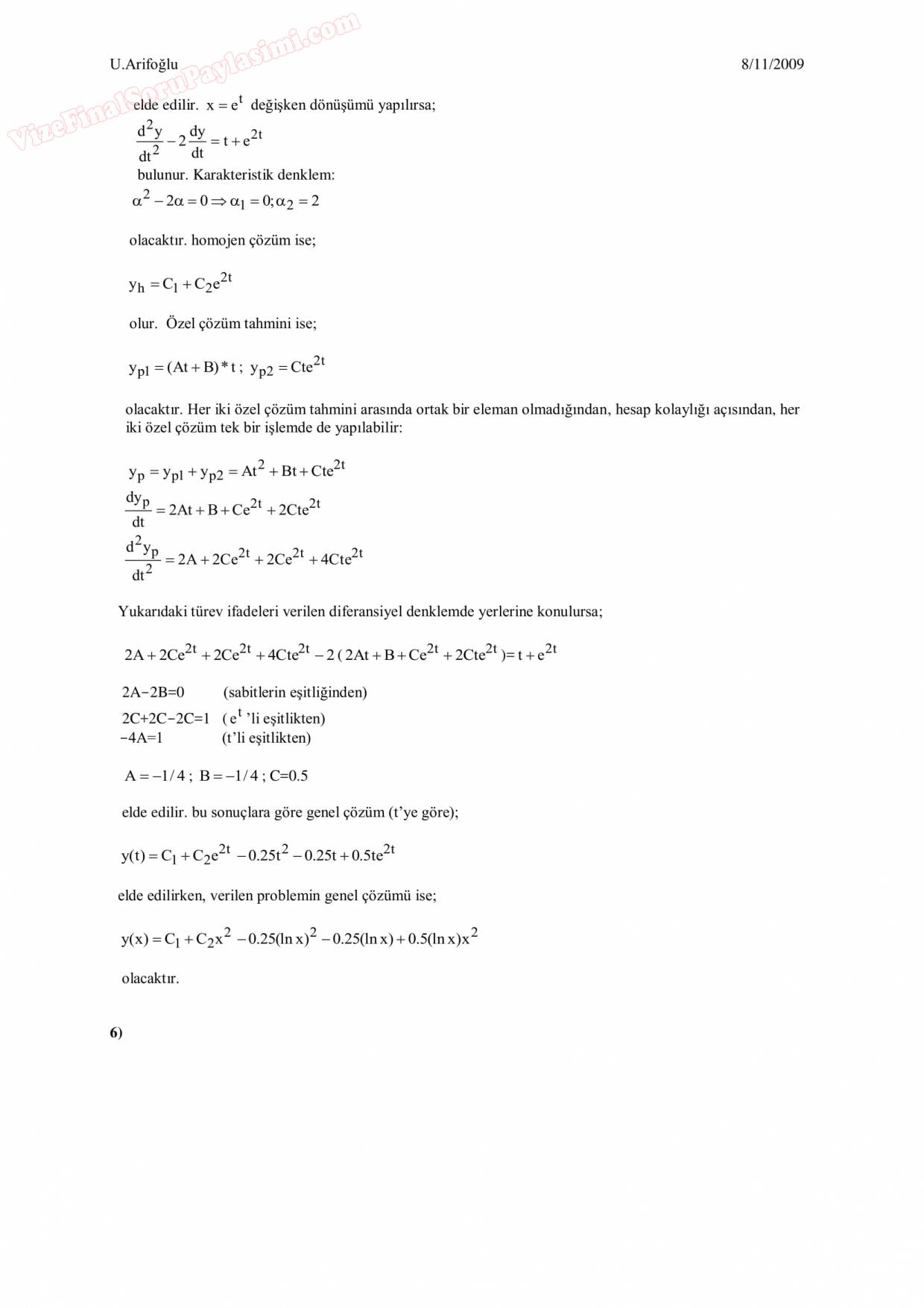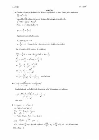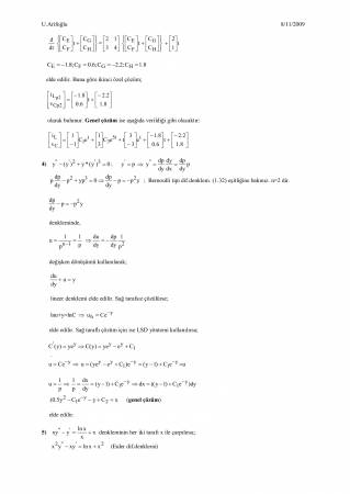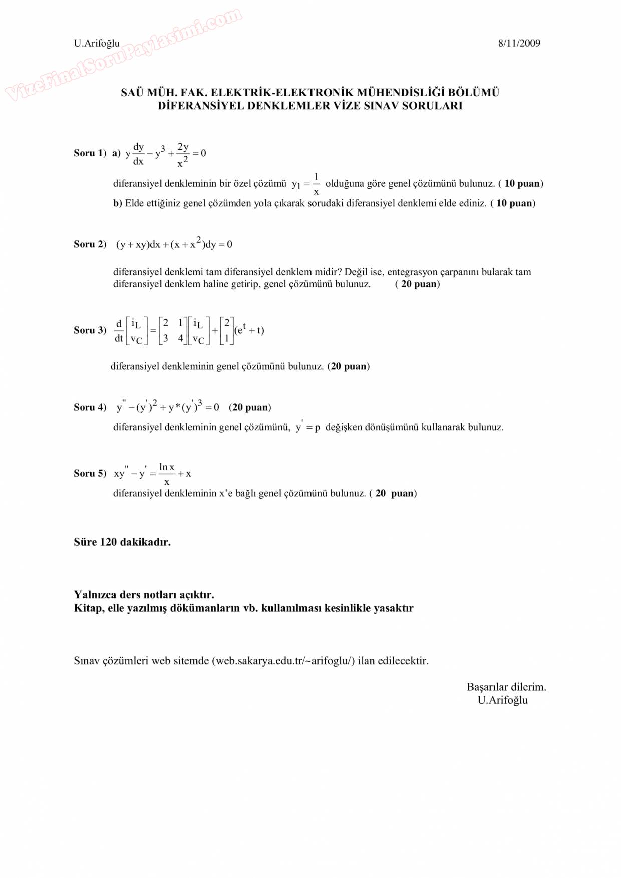 Vize ve Final Soruları / Sakarya Üniversitesi / Diferansiyel Denklemler