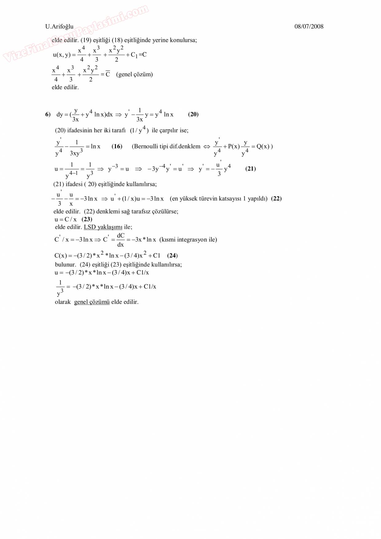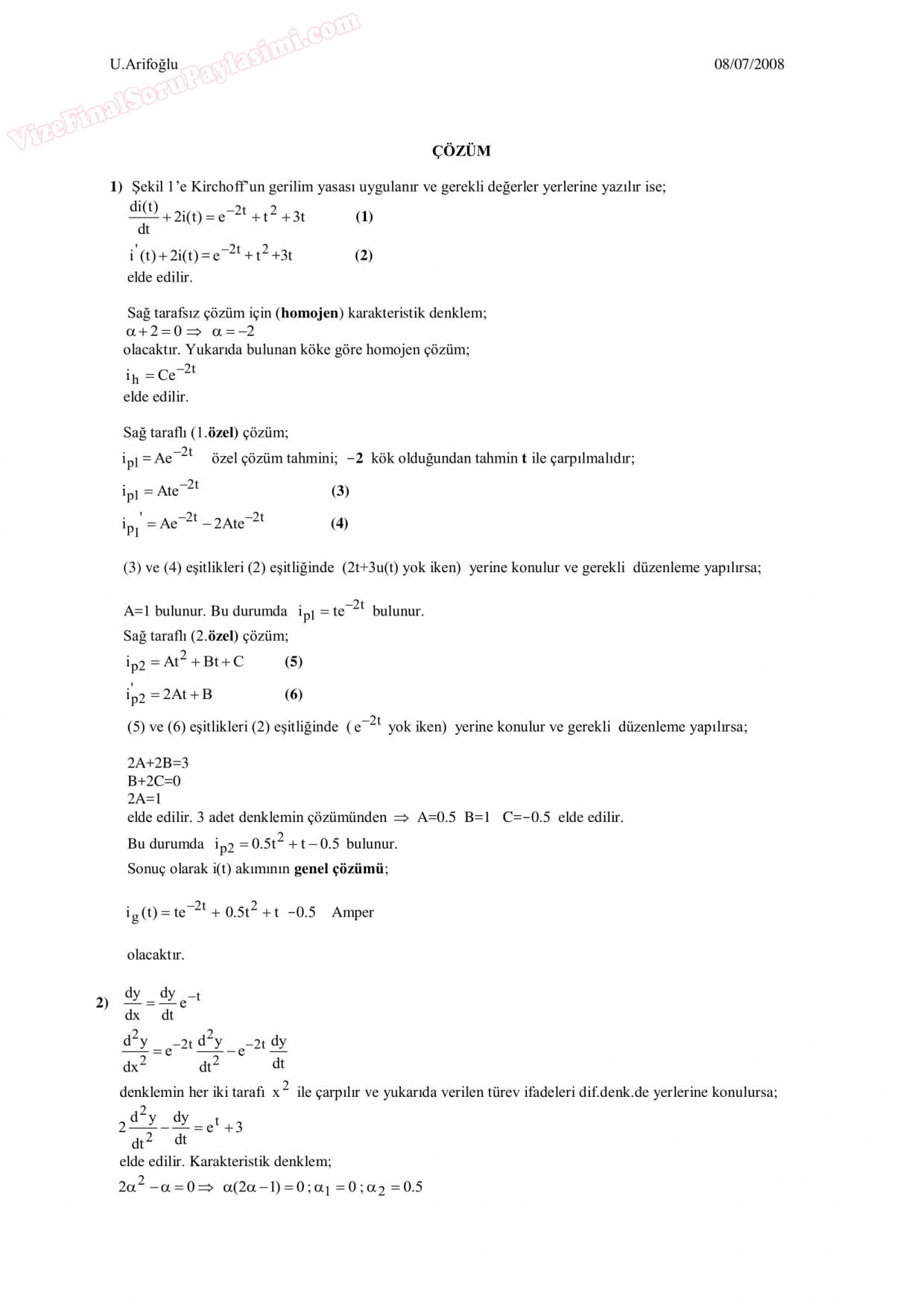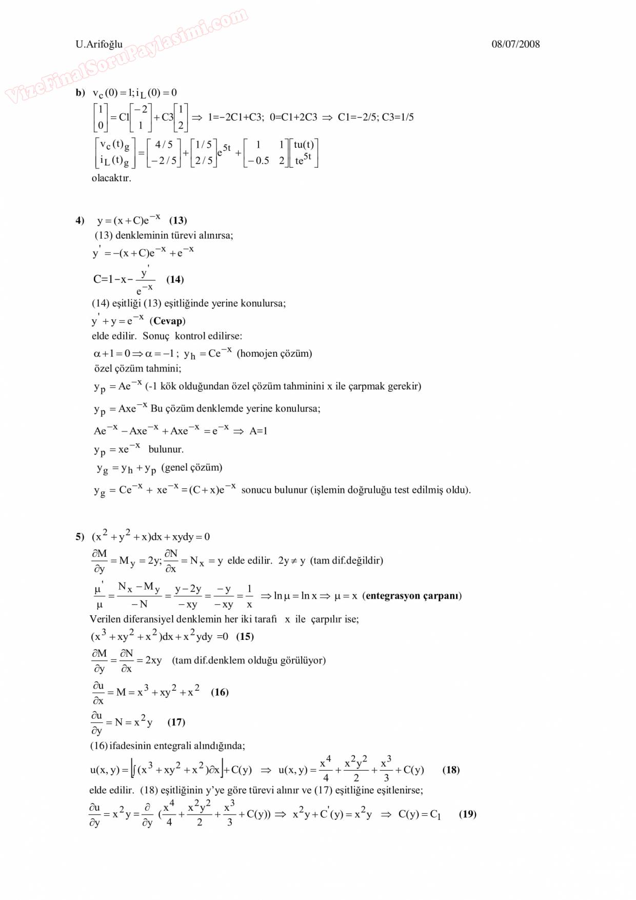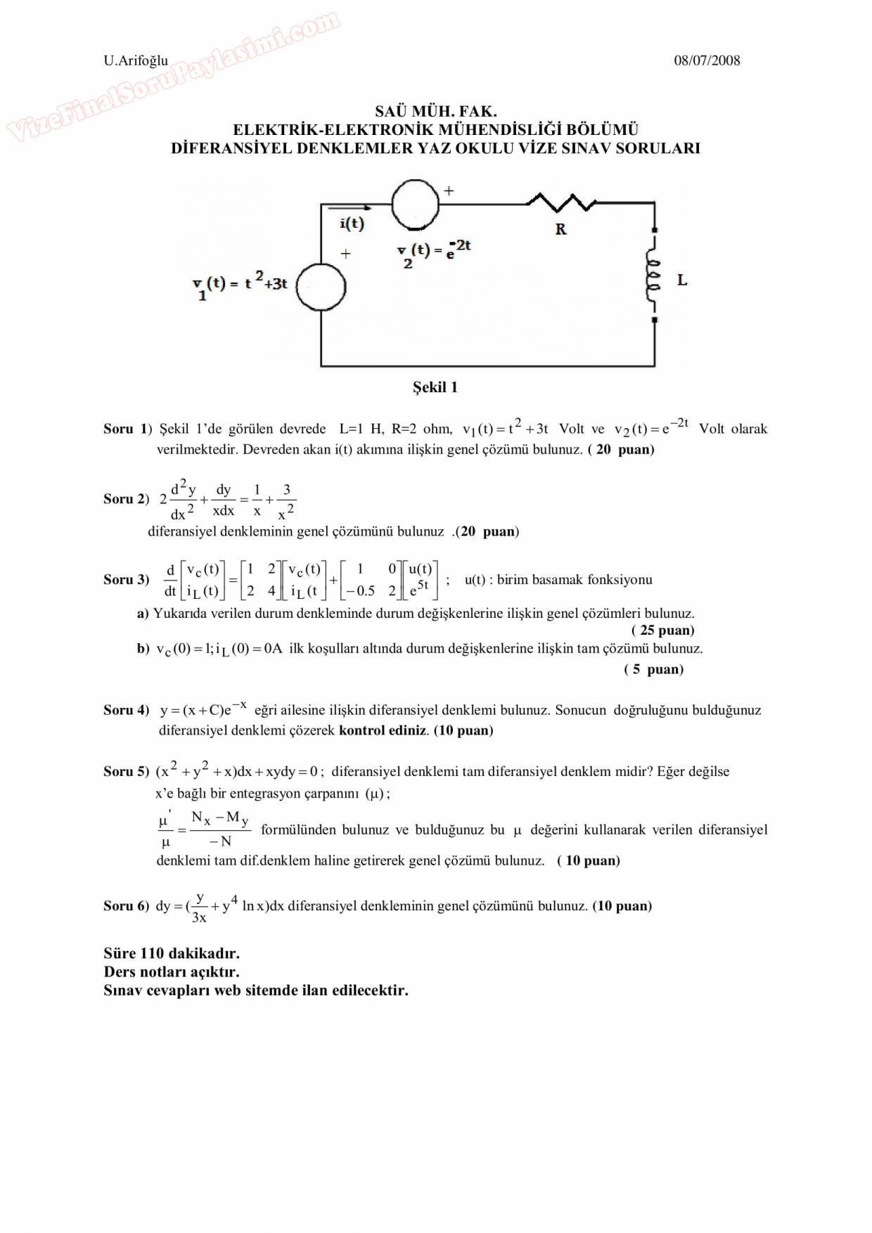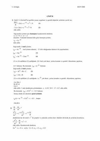 Vize ve Final Soruları / Sakarya Üniversitesi / Diferansiyel Denklemler