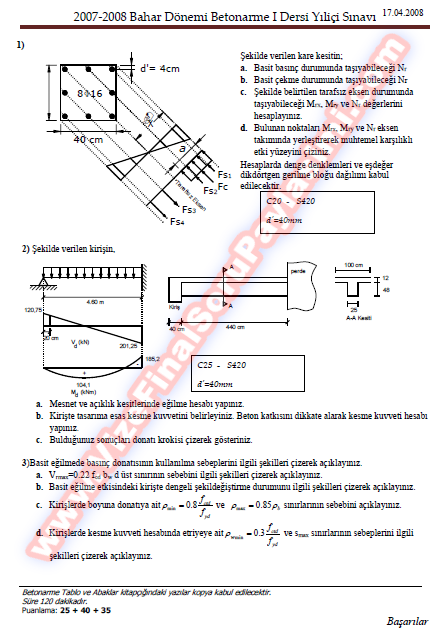 Betonarme-1 Vize Soruları-2008 30-11-2014, 00:17