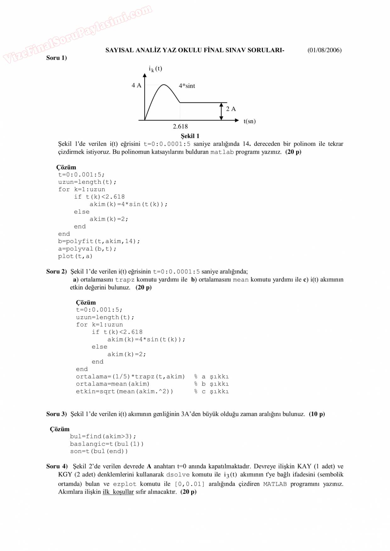 Sayısal Analiz Yaz Okulu Final Soruları Ve cevapları -2007 1-08-2015, 22:20