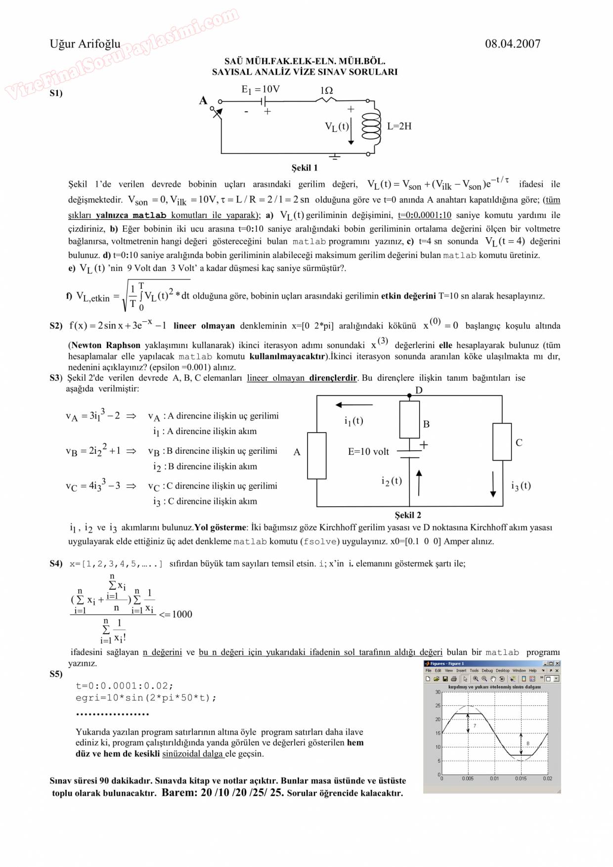 Vize ve Final Soruları / Sakarya Üniversitesi / Sayısal Analiz Dersi