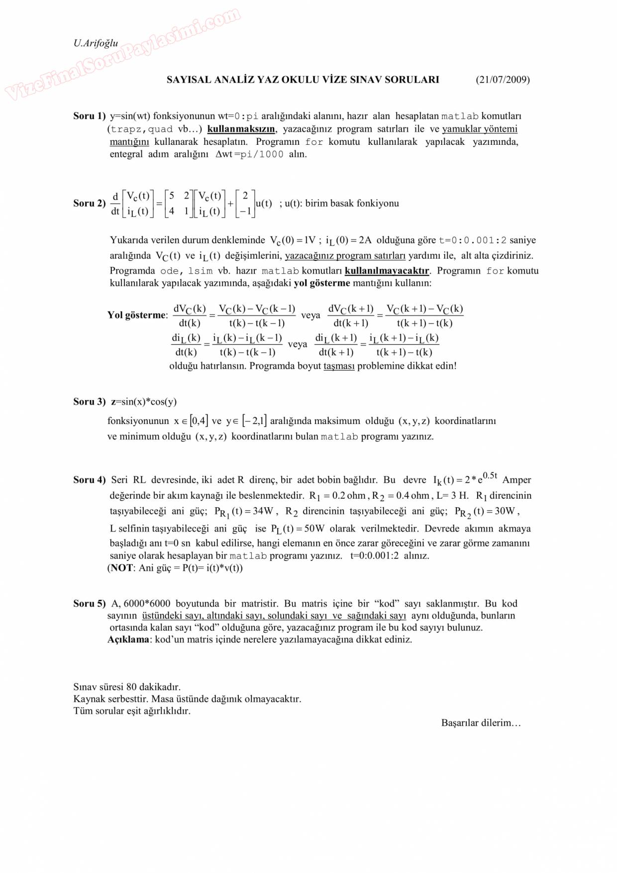 Sayısal Analiz Vize Soruları 27-11-2019, 15:09