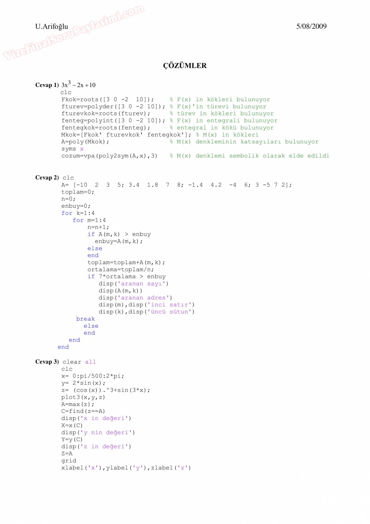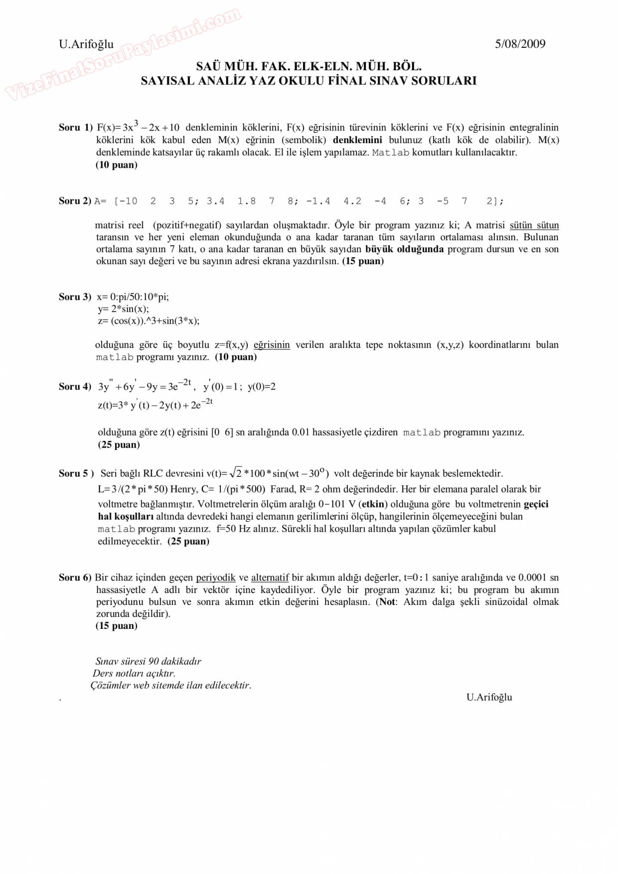 Sayısal Analiz Yaz Okulu Final Soruları Ve cevapları -2007 1-08-2015, 22:20