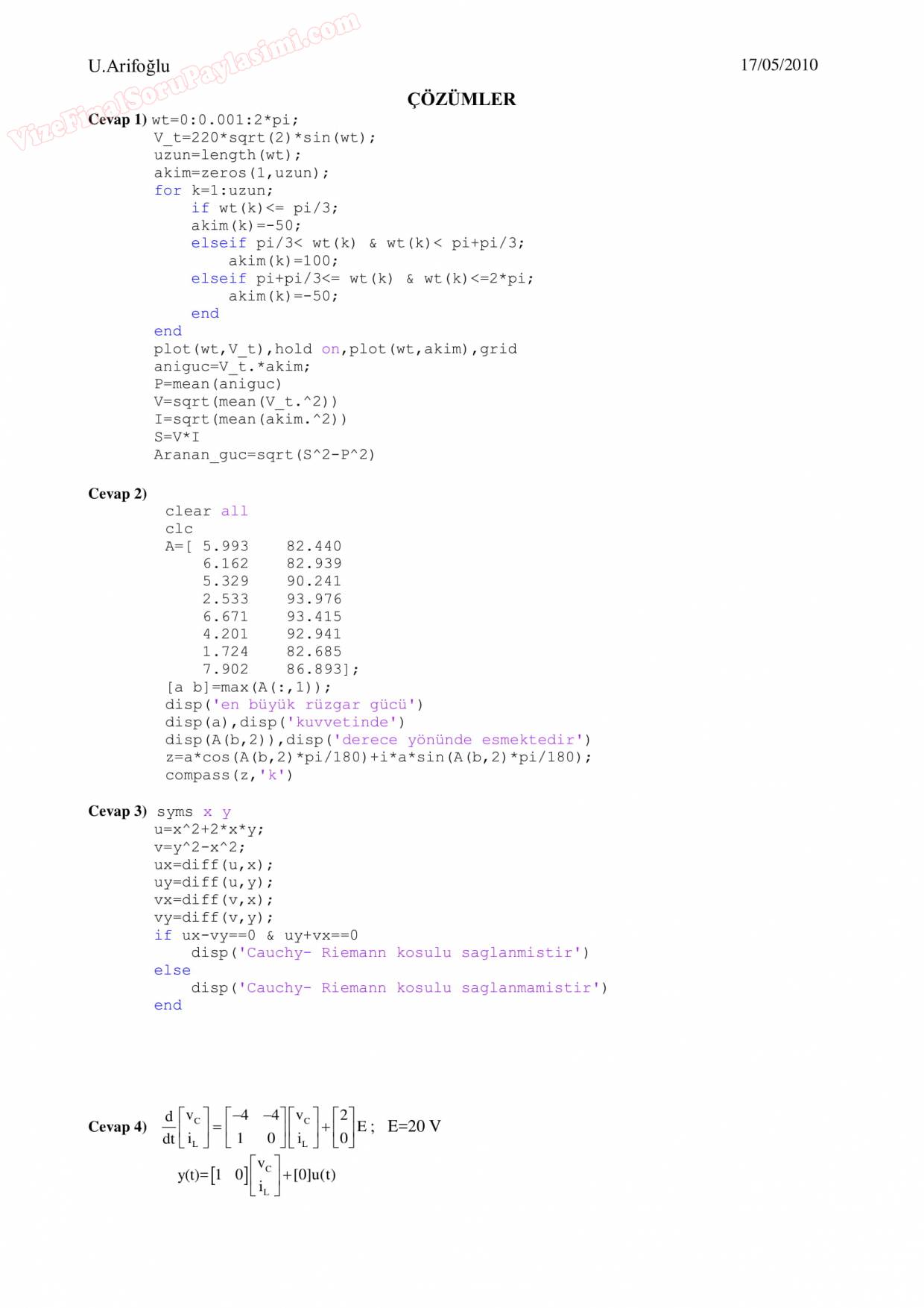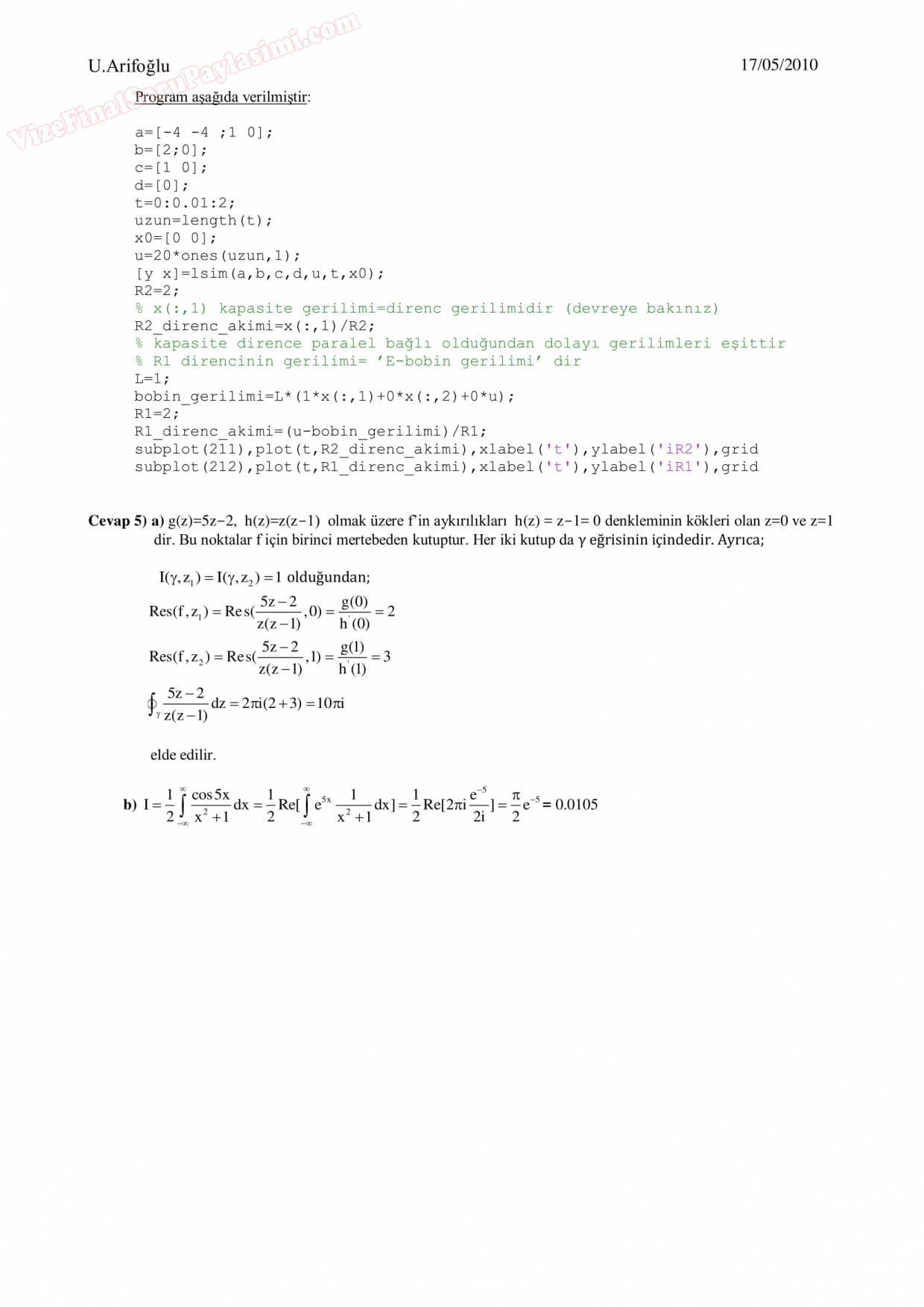 Vize ve Final Soruları / Sakarya Üniversitesi / Sayısal Analiz Dersi