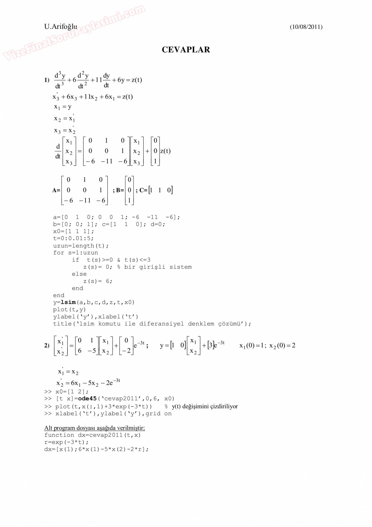 Sayısal Analiz Yaz Okulu Vize Soruları Ve cevapları -2007 1-08-2015, 22:22