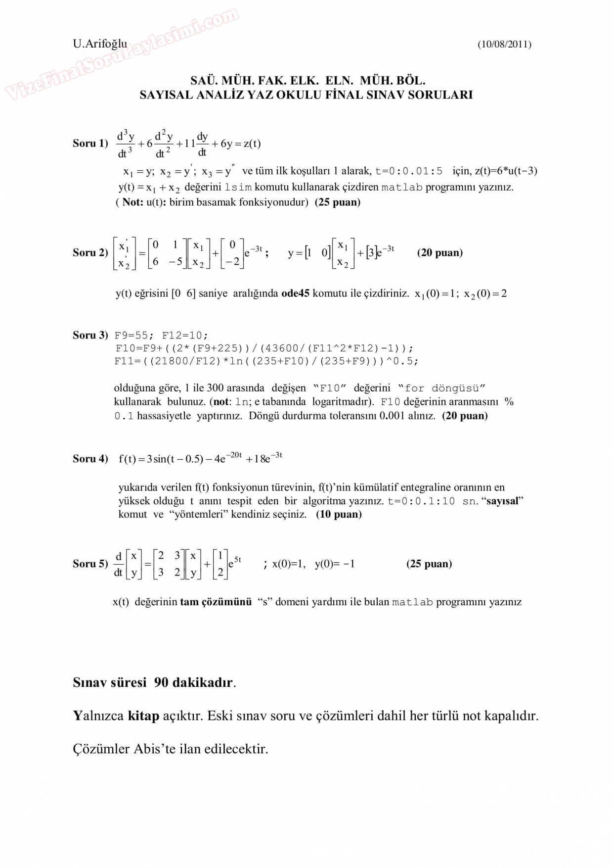 Sayısal Analiz Yaz Okulu Final Soruları Ve cevapları -2007 1-08-2015, 22:20