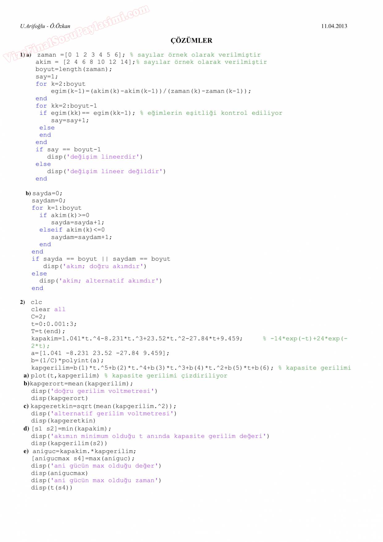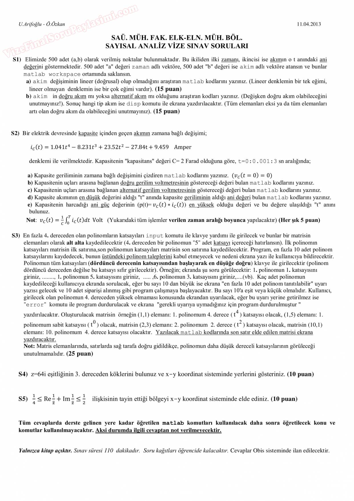 Vize ve Final Soruları / Sakarya Üniversitesi / Sayısal Analiz Dersi