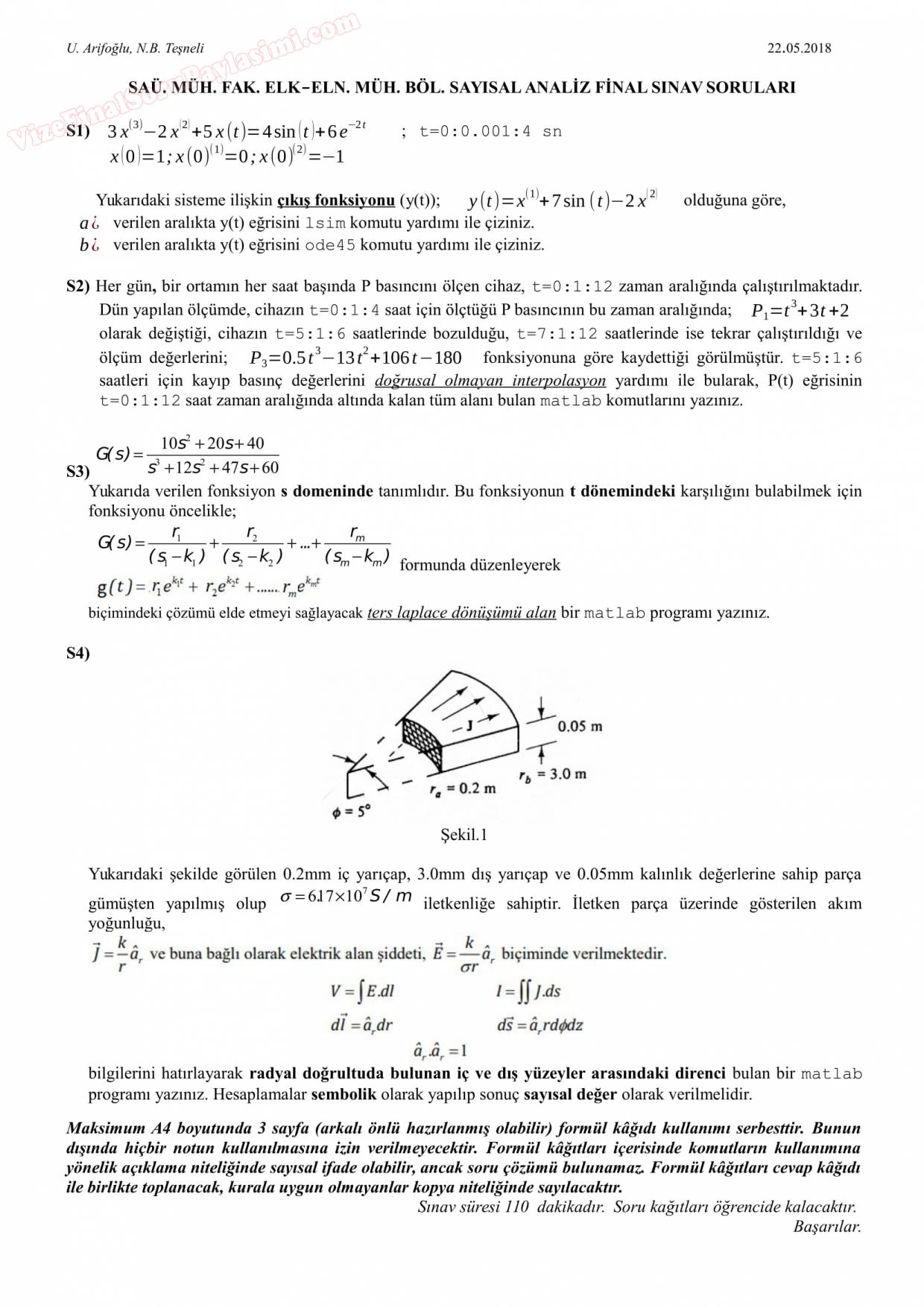 Sayısal Analiz Yaz Okulu Final Soruları 27-11-2019, 14:36