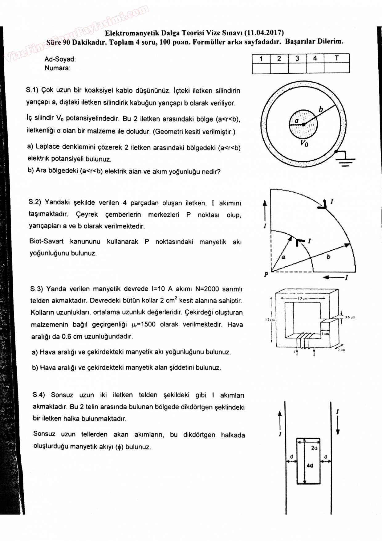 Elektromanyetik Dalga Teorisi Vize Sınavı 27-11-2019, 15:54