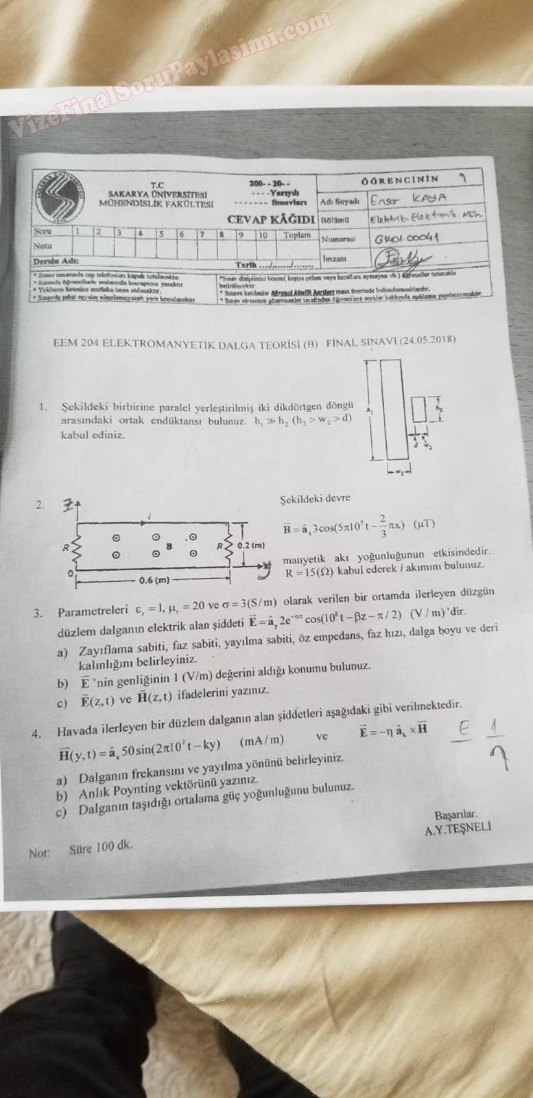 Elektromanyetik Dalga Teorisi Final Sınavı Soruları 27-11-2019, 15:57