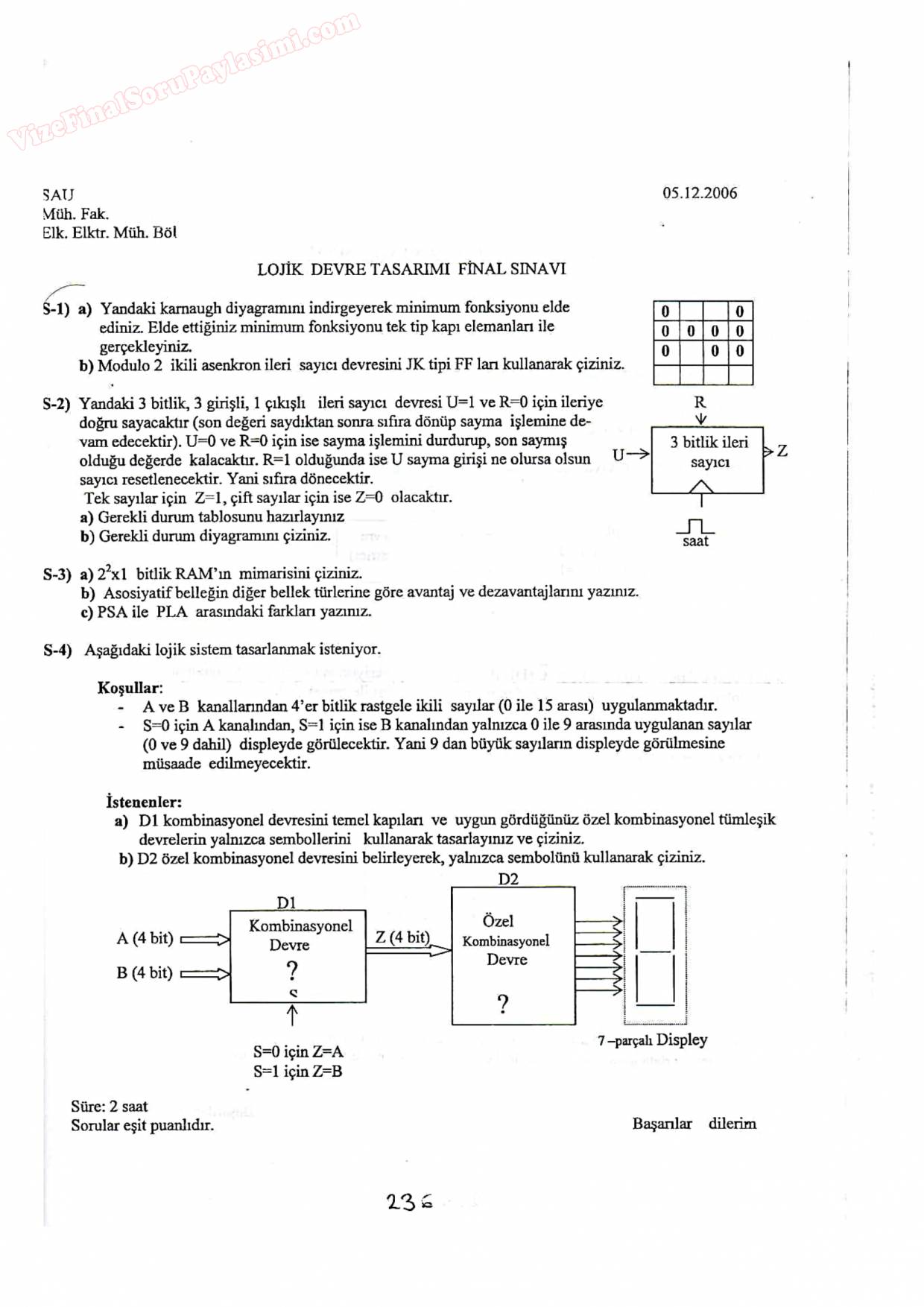 Vize ve Final Soruları / Sakarya Üniversitesi / Sayısal Devre Tasarımı Dersi