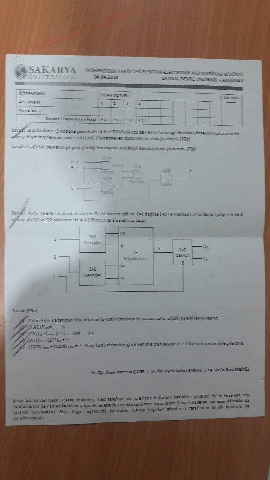 Vize ve Final Soruları / Sakarya Üniversitesi / Sayısal Devre Tasarımı Dersi