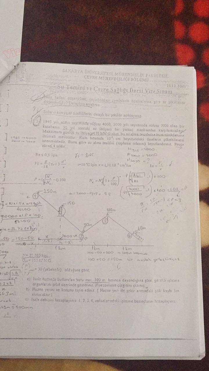 Vize ve Final Soruları / Sakarya Üniversitesi / Su Temini ve Çevre Sağlığı -1