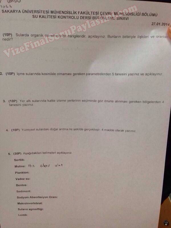 Su Kalitesi Final Soruları 26-11-2019, 23:11
