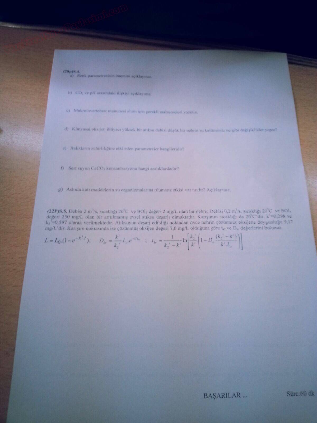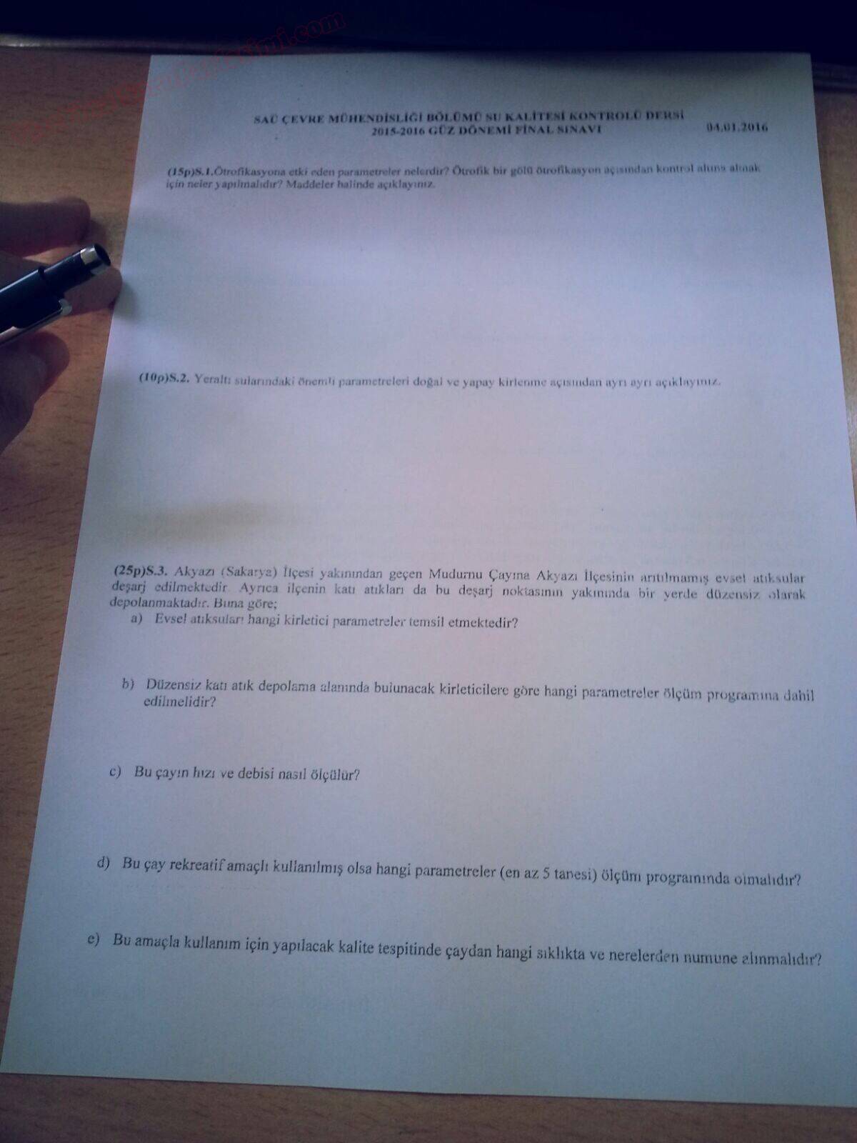 Vize ve Final Soruları / Sakarya Üniversitesi / Su Kalitesi ve Kontrolü