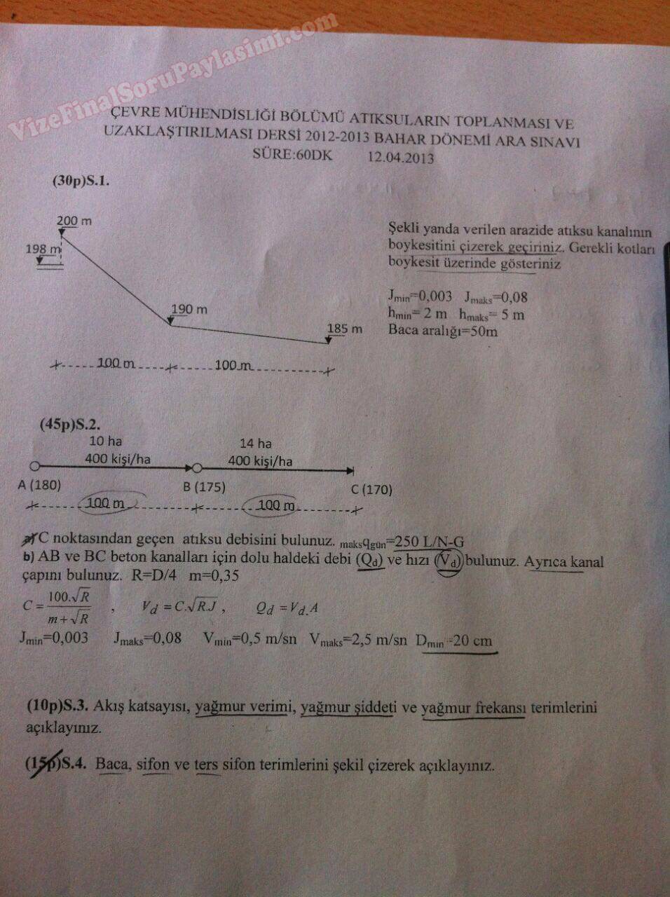 Atık Suların Uzaklaştırılması Vize Soruları 27-11-2019, 16:50