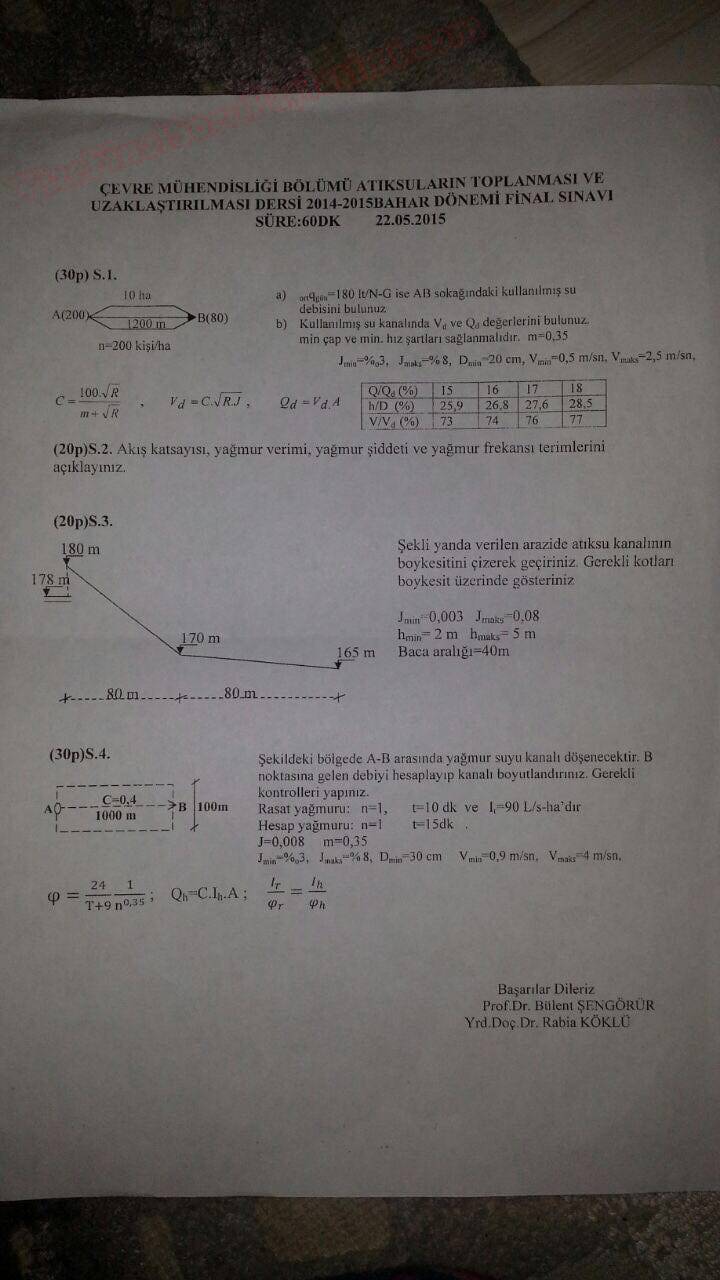 Kullanılmış Suların Arıtımı Final Soruları 24-03-2015, 00:30