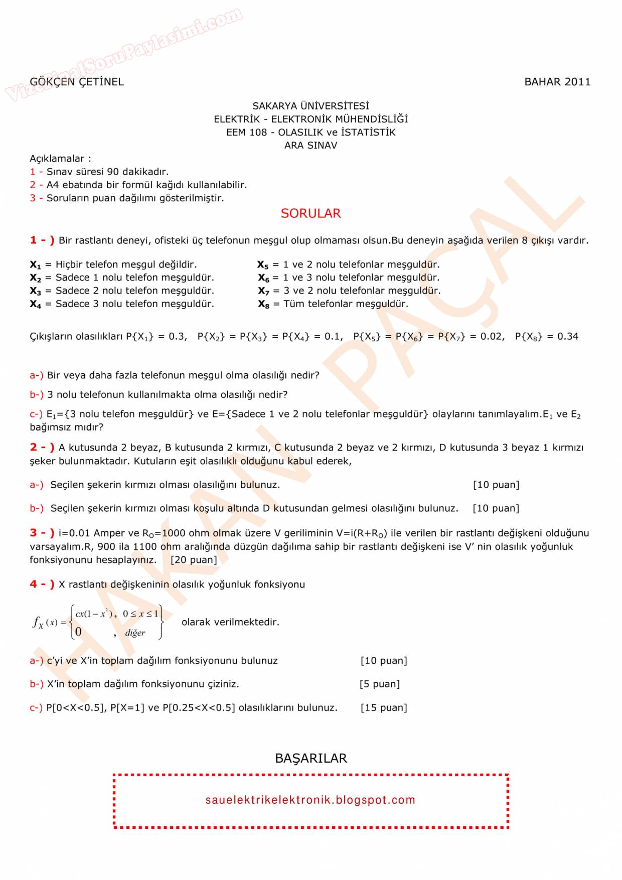Olasılık ve İstatistik Vize -2 Soruları Ve Cevapları 28-11-2016, 15:56