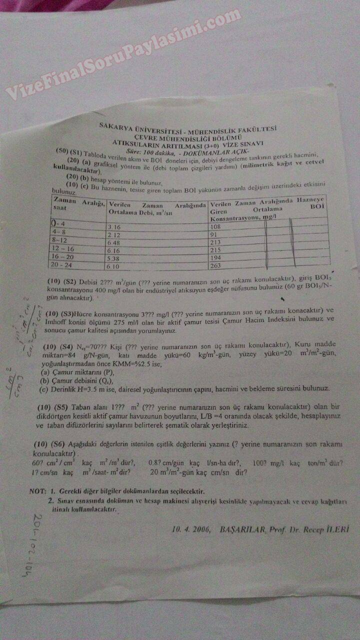 Kullanılmış Suların Arıtılması Vize Soruları 12-04-2015, 21:25