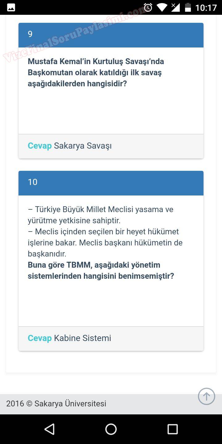 Vize ve Final Soruları / Sakarya Üniversitesi / Atatürk İlkeleri ve İnkılâp Tarihi -1