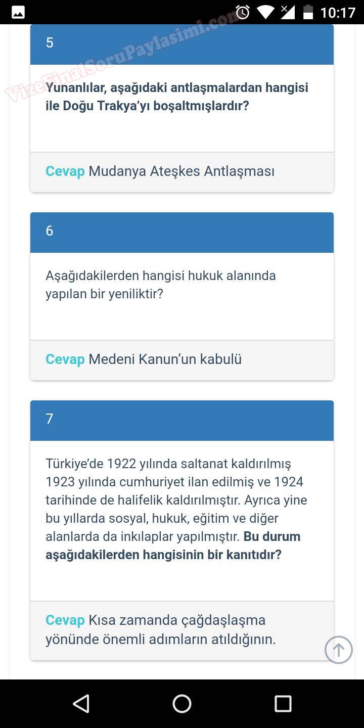 Atatürk İlkeleri ve İnkılap tarihi Vize soruları