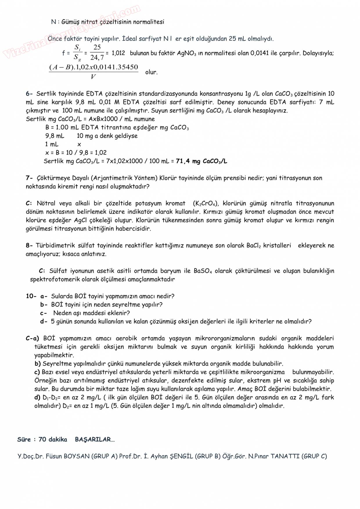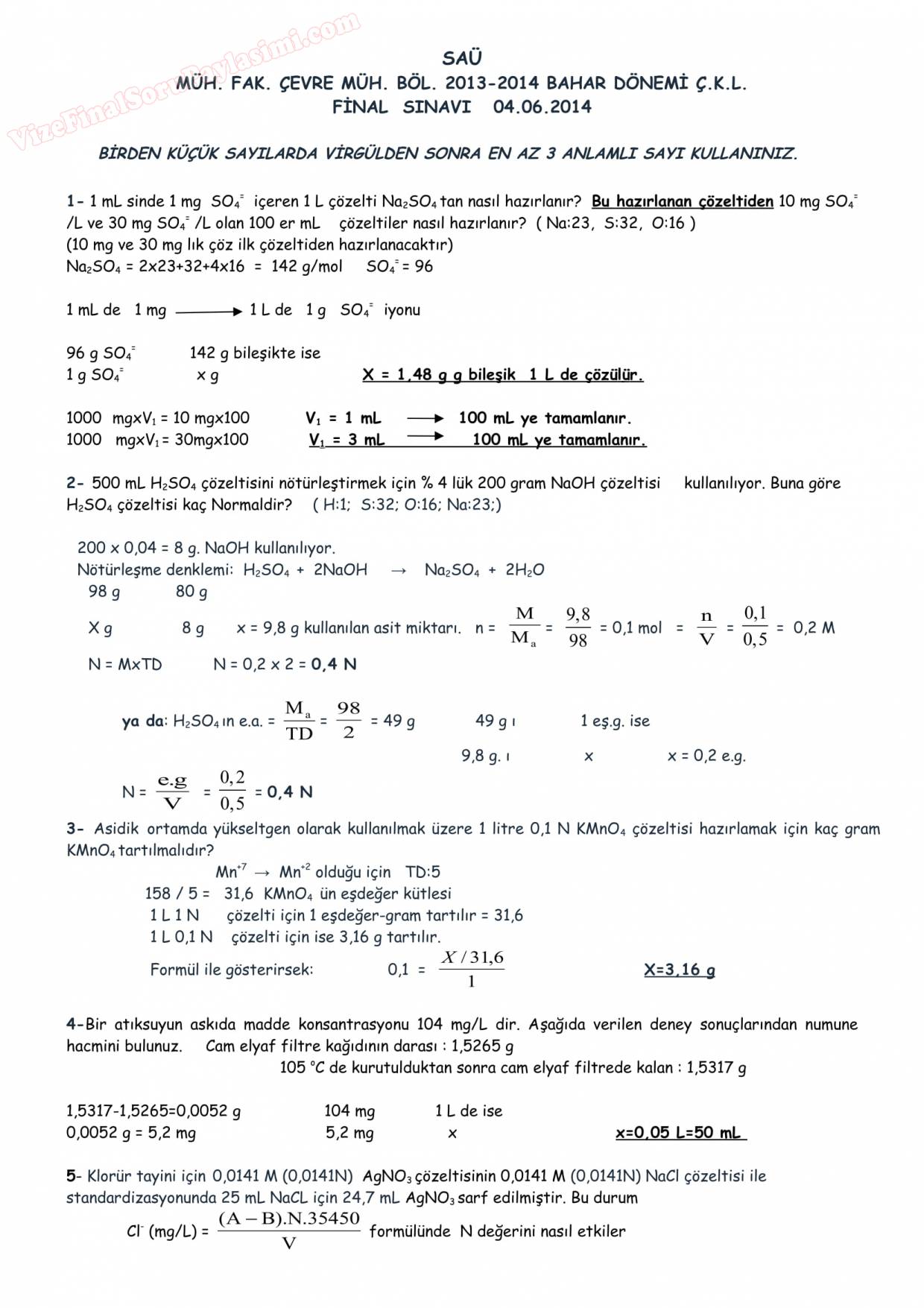 Çevre Kimyası II Final Soruları 27-11-2019, 21:00