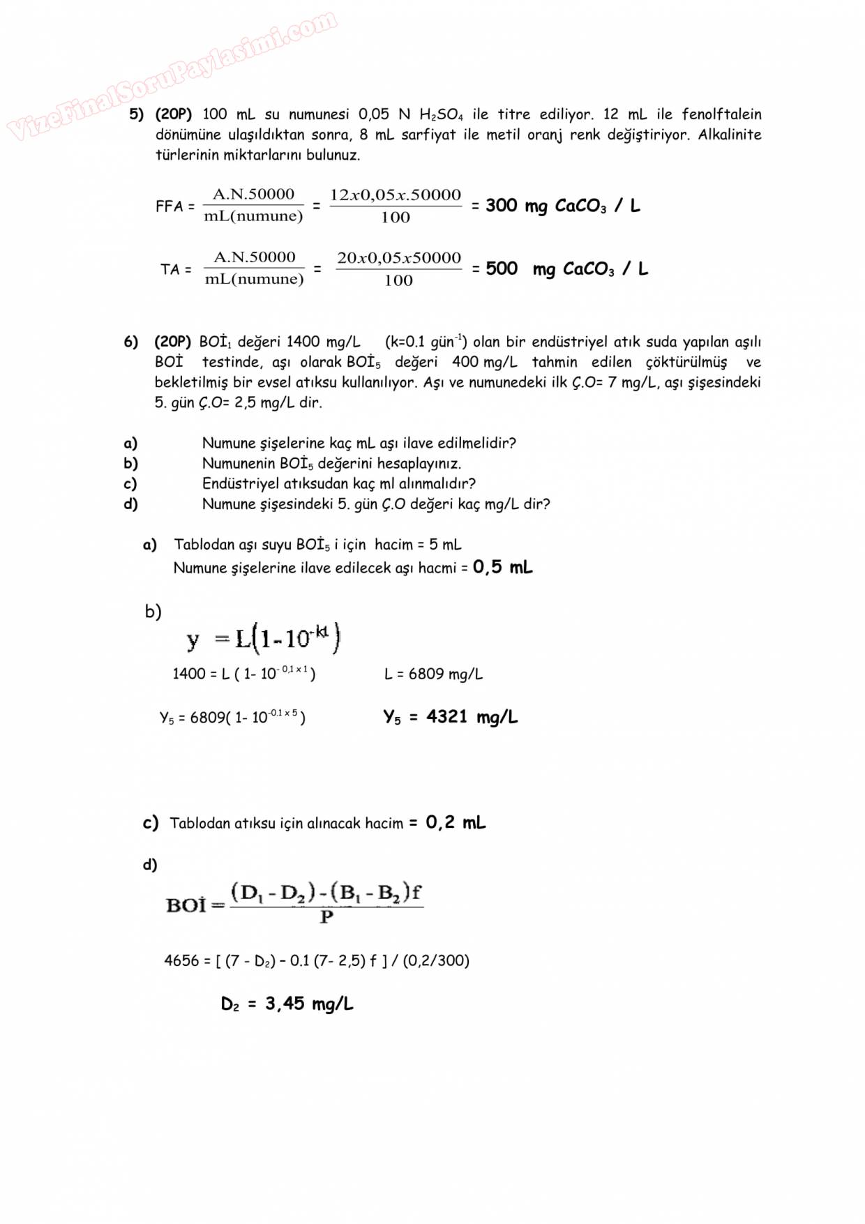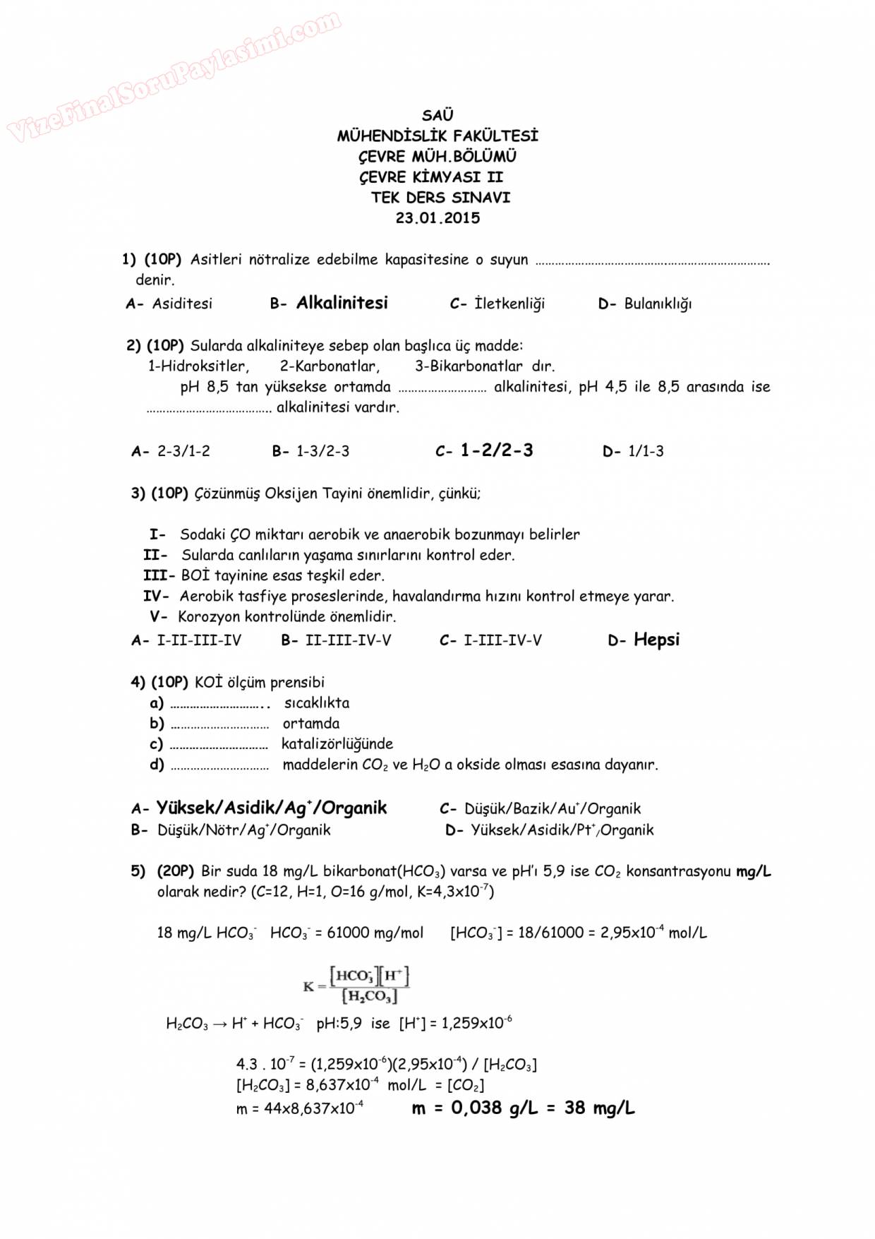 Vize ve Final Soruları / Sakarya Üniversitesi / Çevre Kimyası II