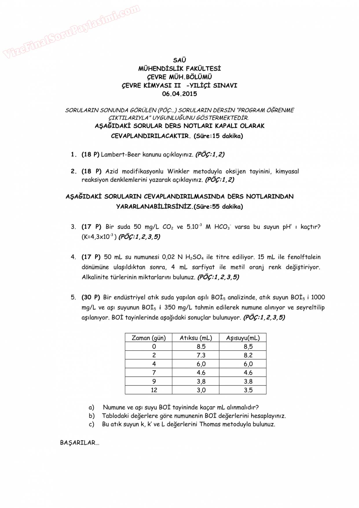 Çevre Kimyası II Vize Soruları 27-11-2019, 20:59