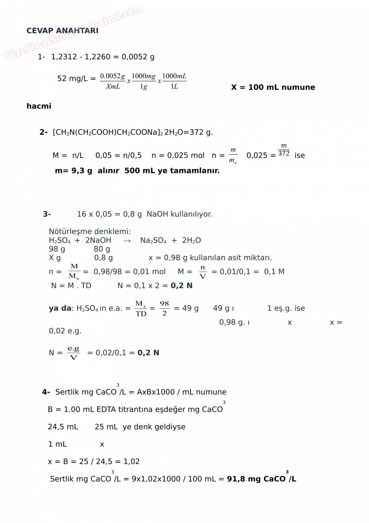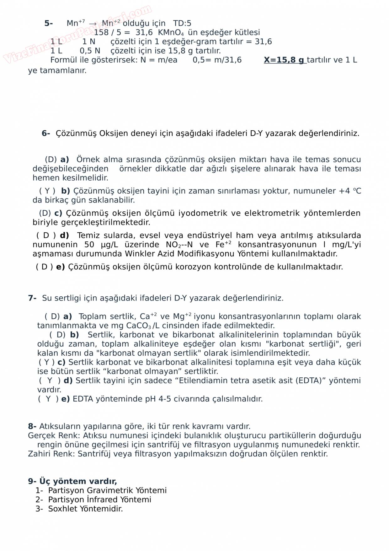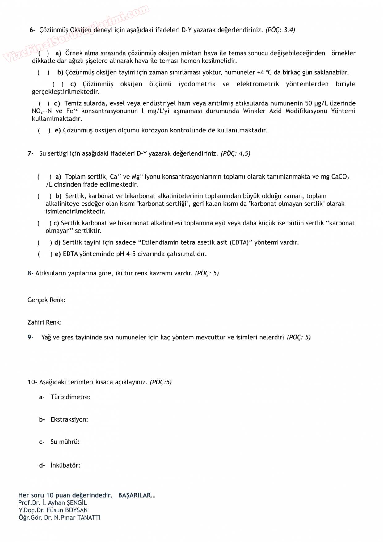 Vize ve Final Soruları / Sakarya Üniversitesi / Çevre Kimyası II
