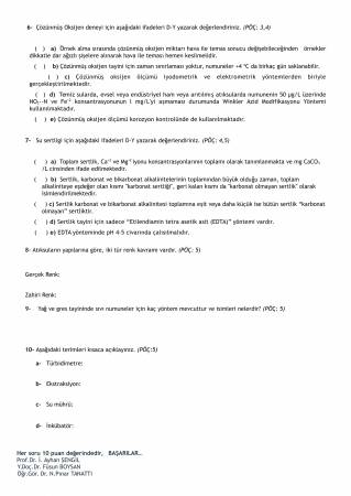 Çevre Kimyası II Final Soruları