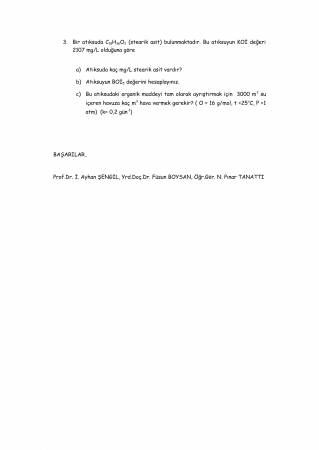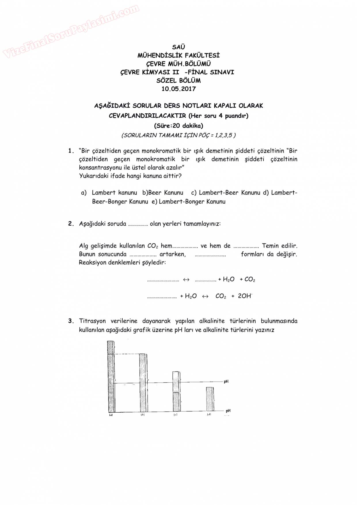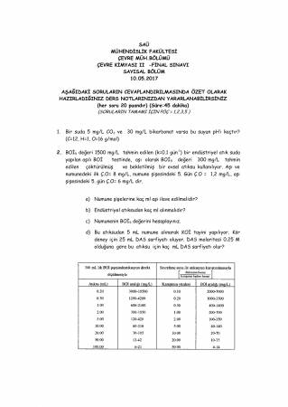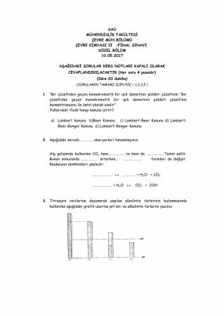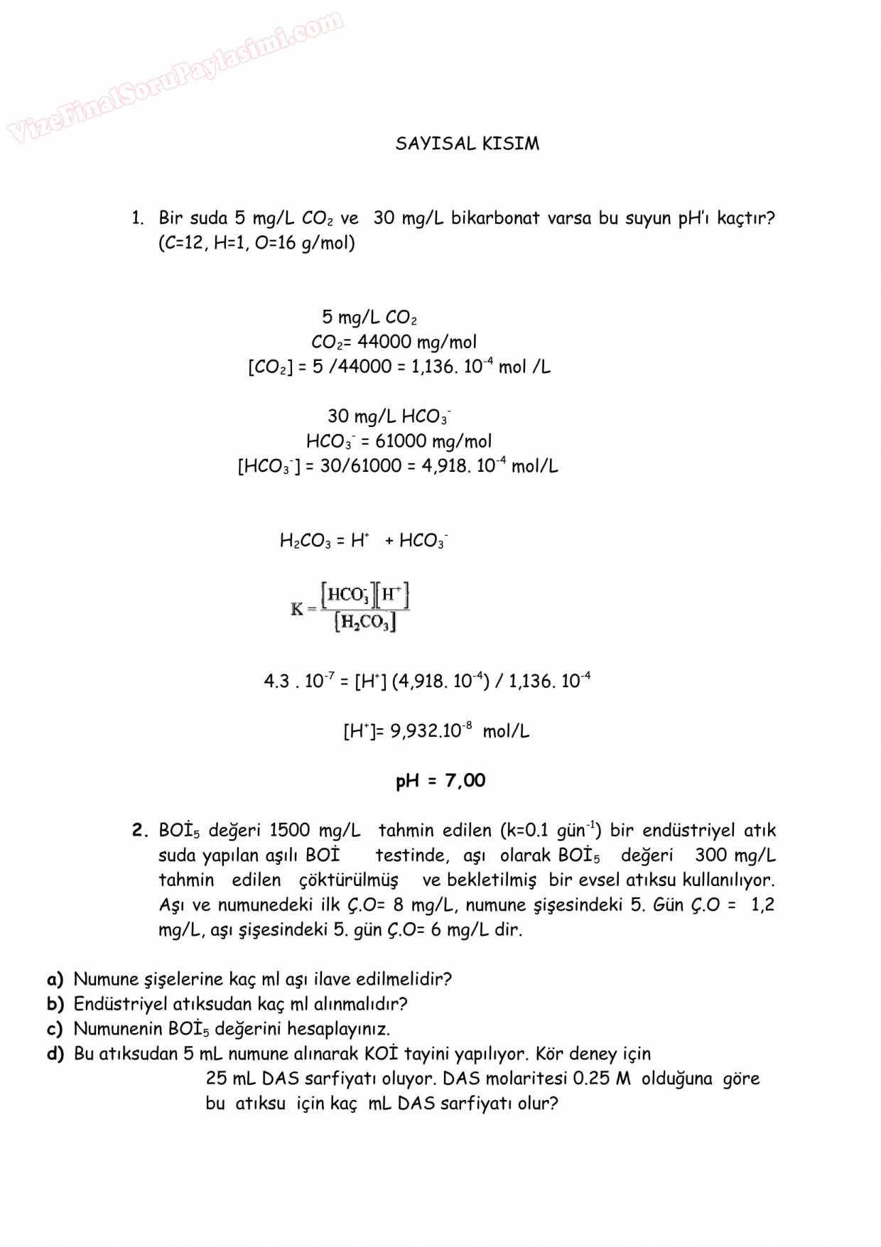 Vize ve Final Soruları / Sakarya Üniversitesi / Çevre Kimyası II