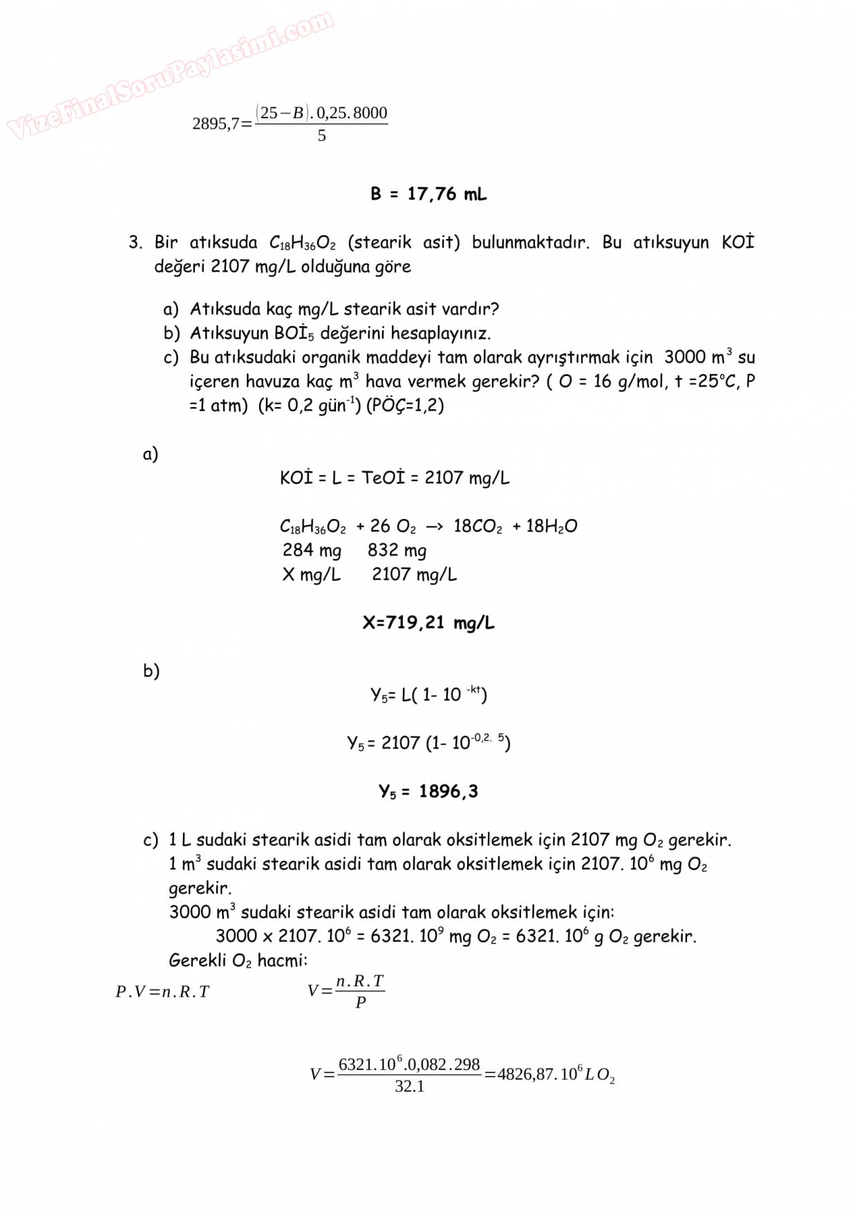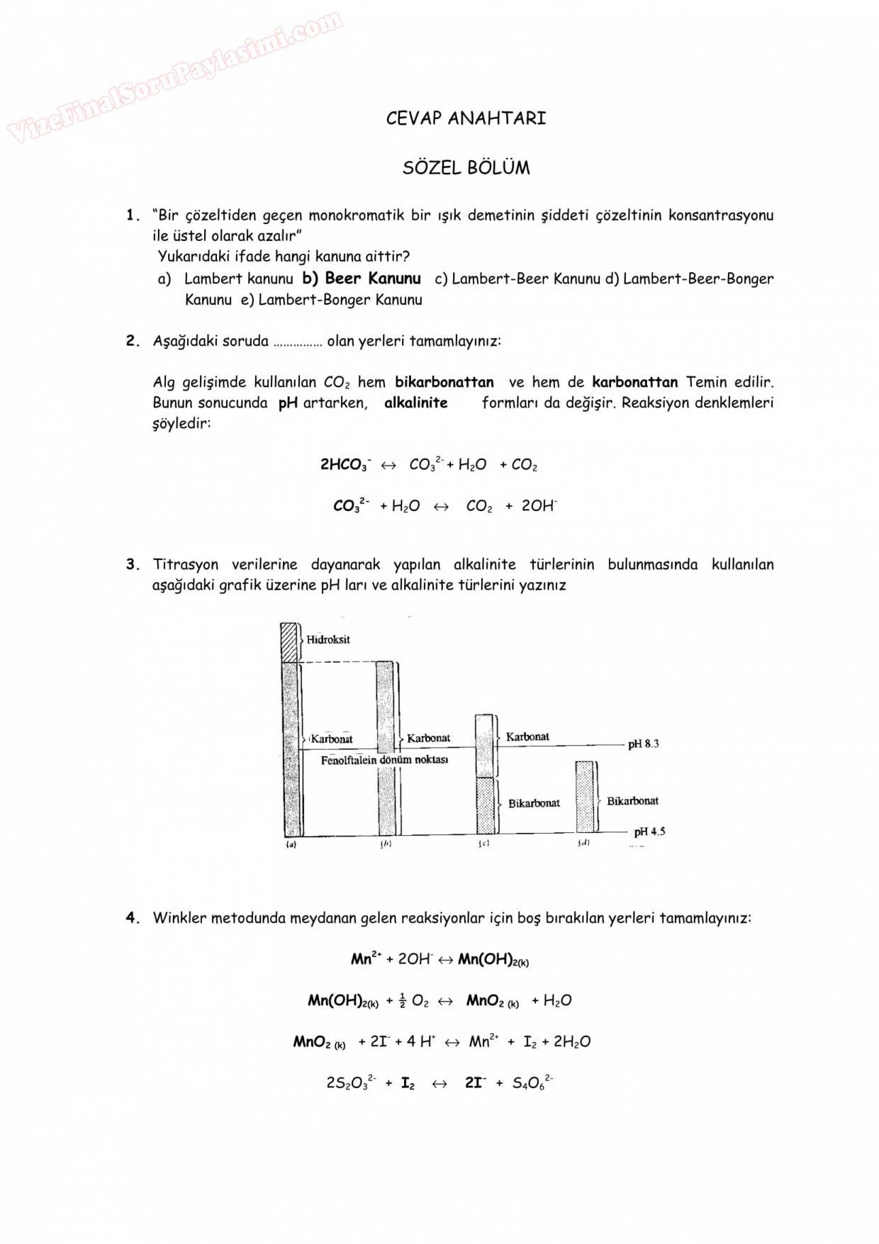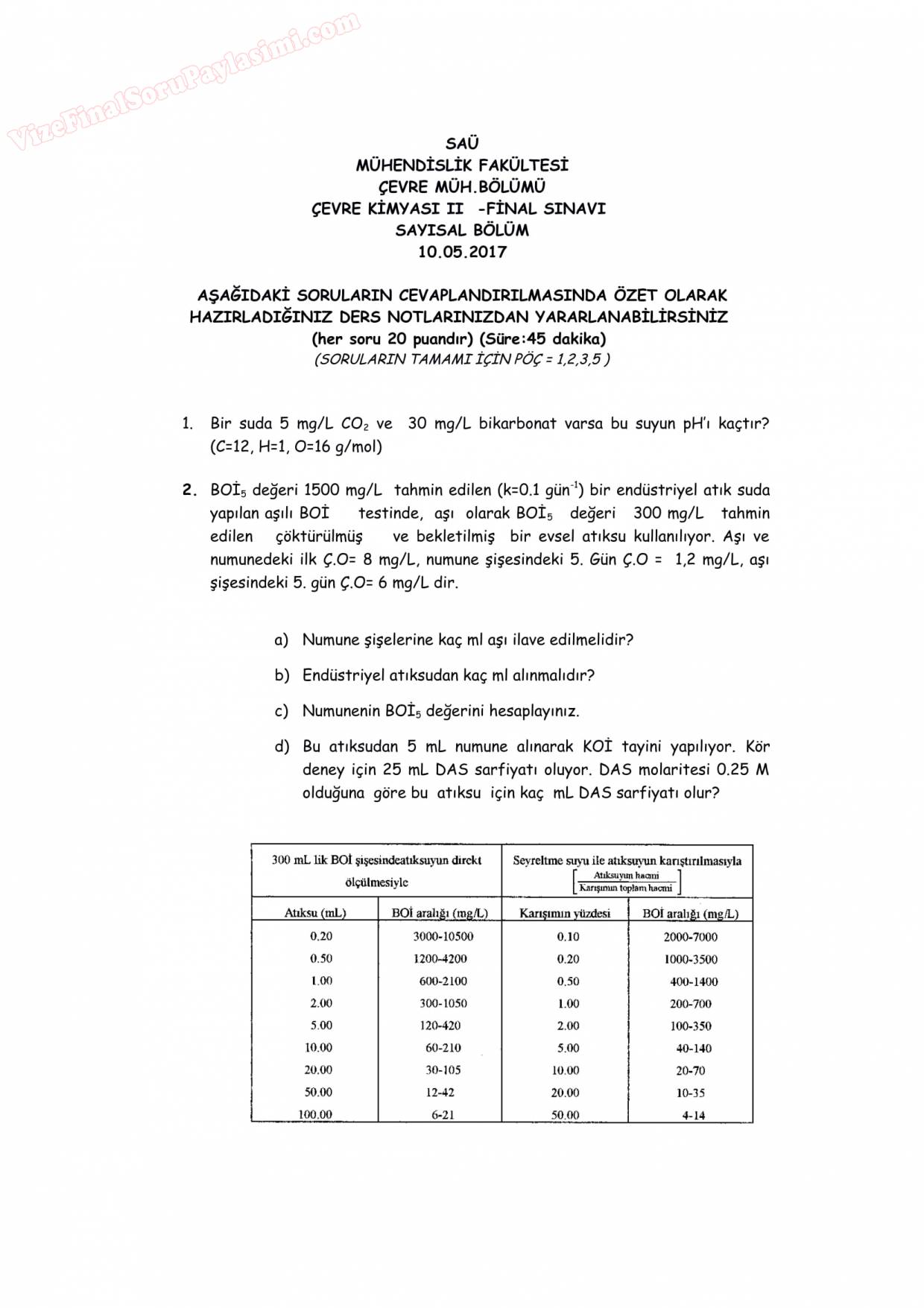 Vize ve Final Soruları / Sakarya Üniversitesi / Çevre Kimyası II