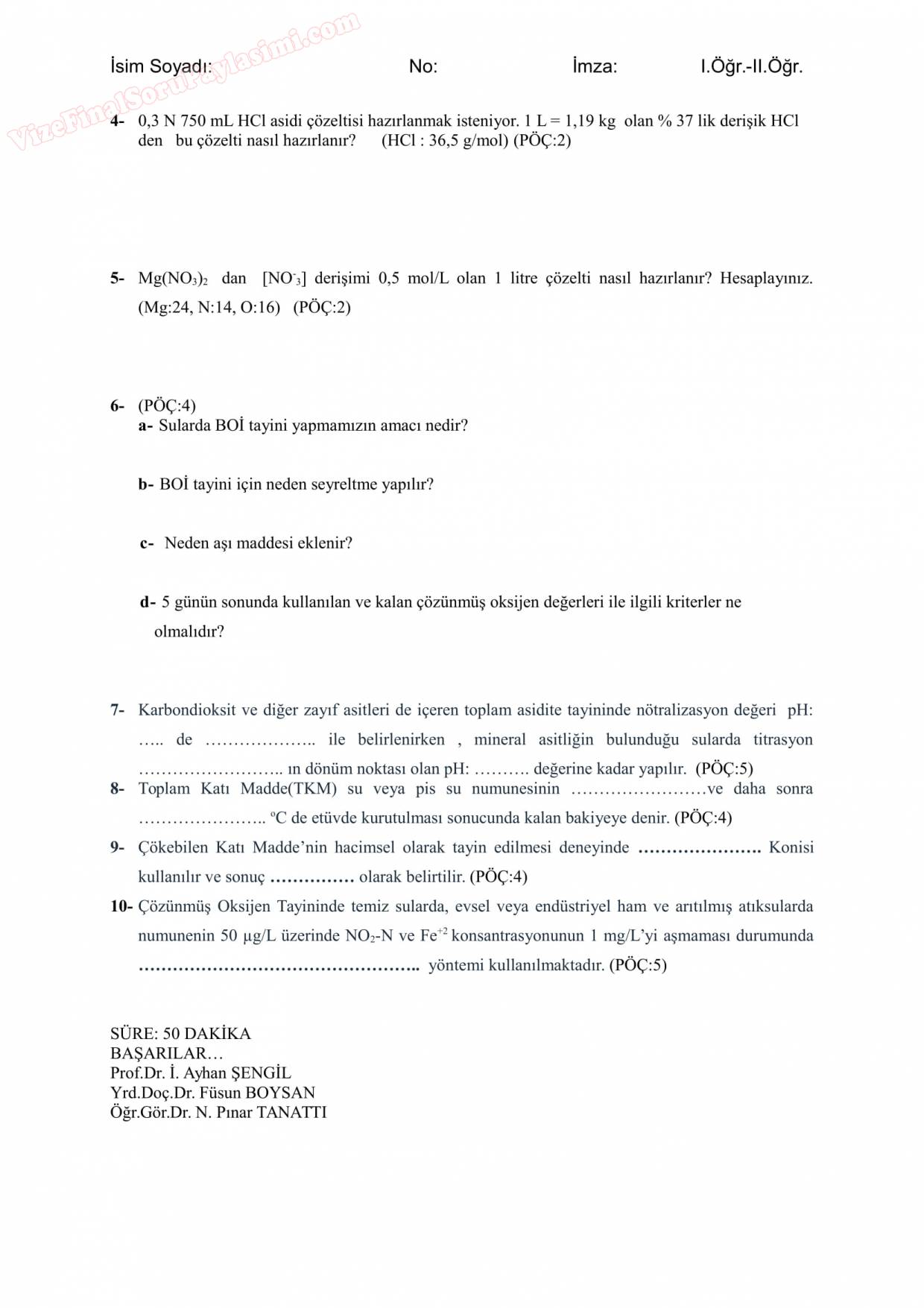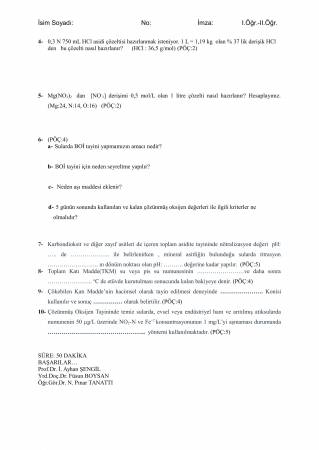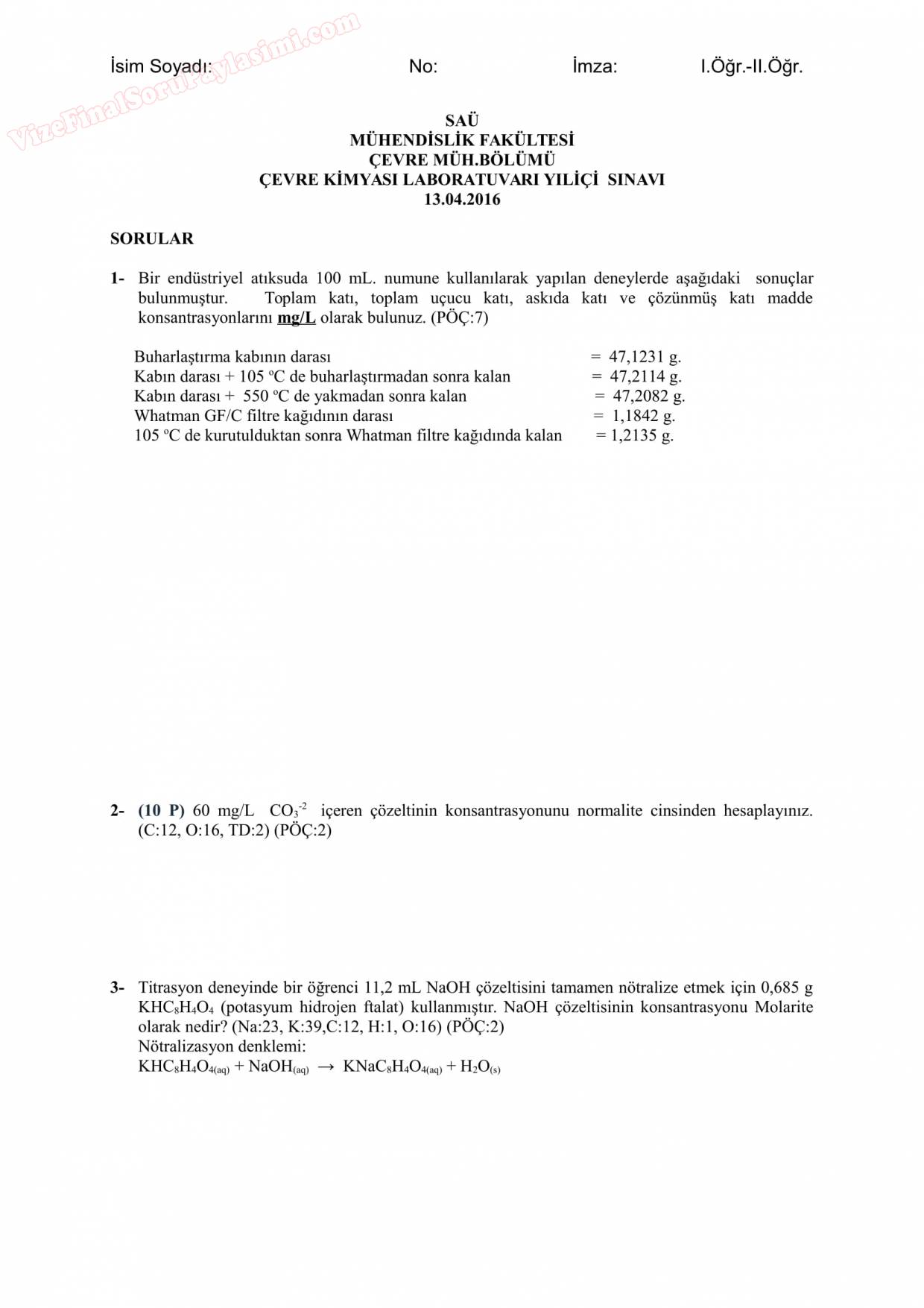 Vize ve Final Soruları / Sakarya Üniversitesi / Çevre Kimyası II