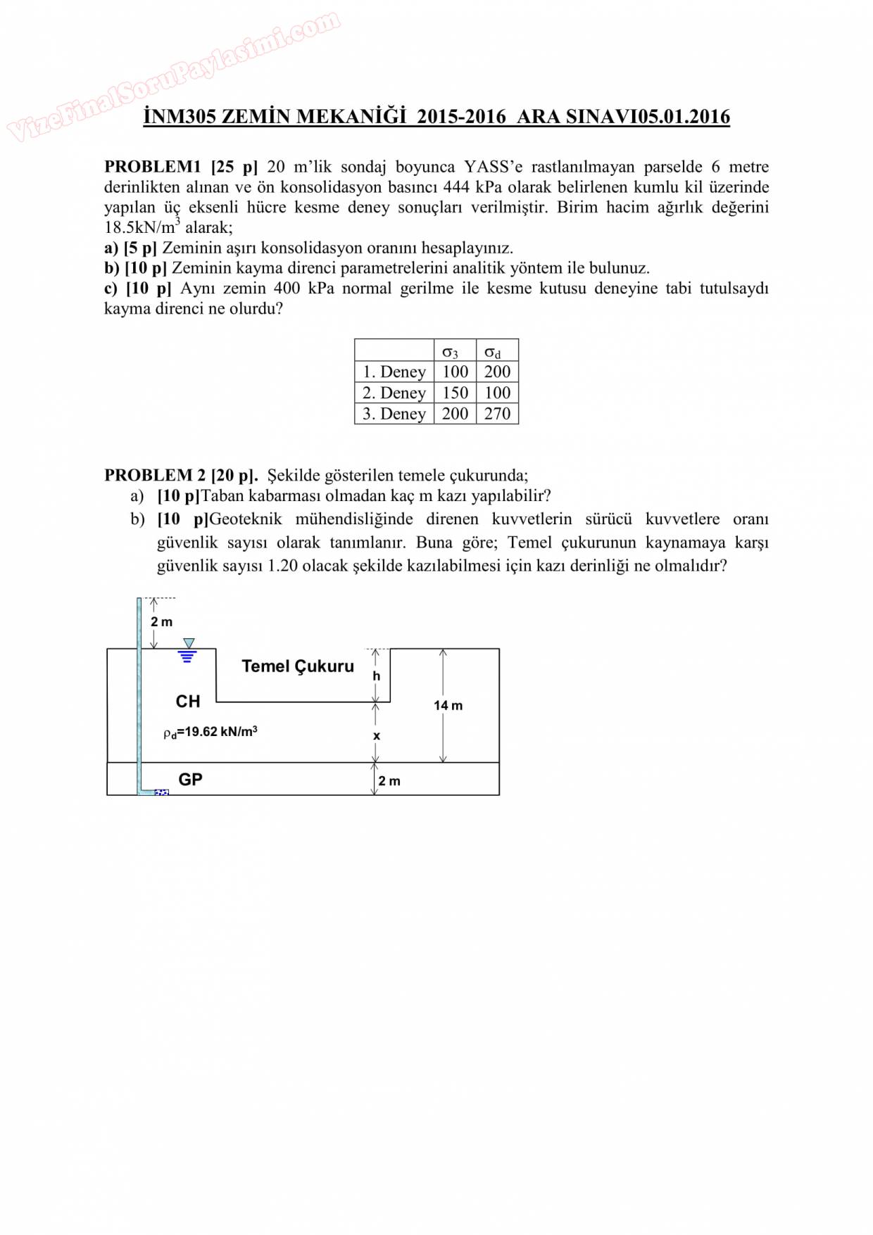 Zemin Mekaniği -2 Dersi 1.Vize Soruları ve Çözümleri 23-04-2016, 02:13