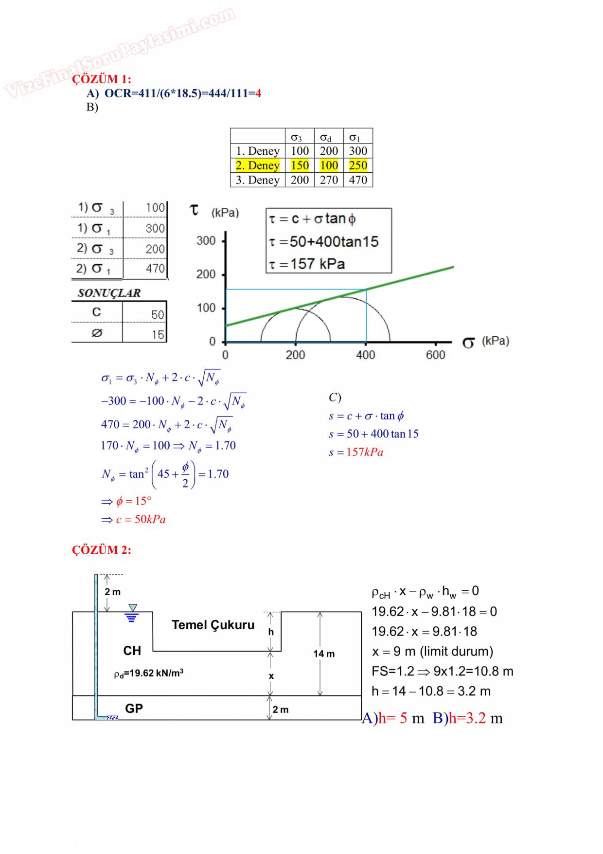 Zemin Mekaniği -2 Vize soruları ve Çözümleri 21-05-2015, 15:55