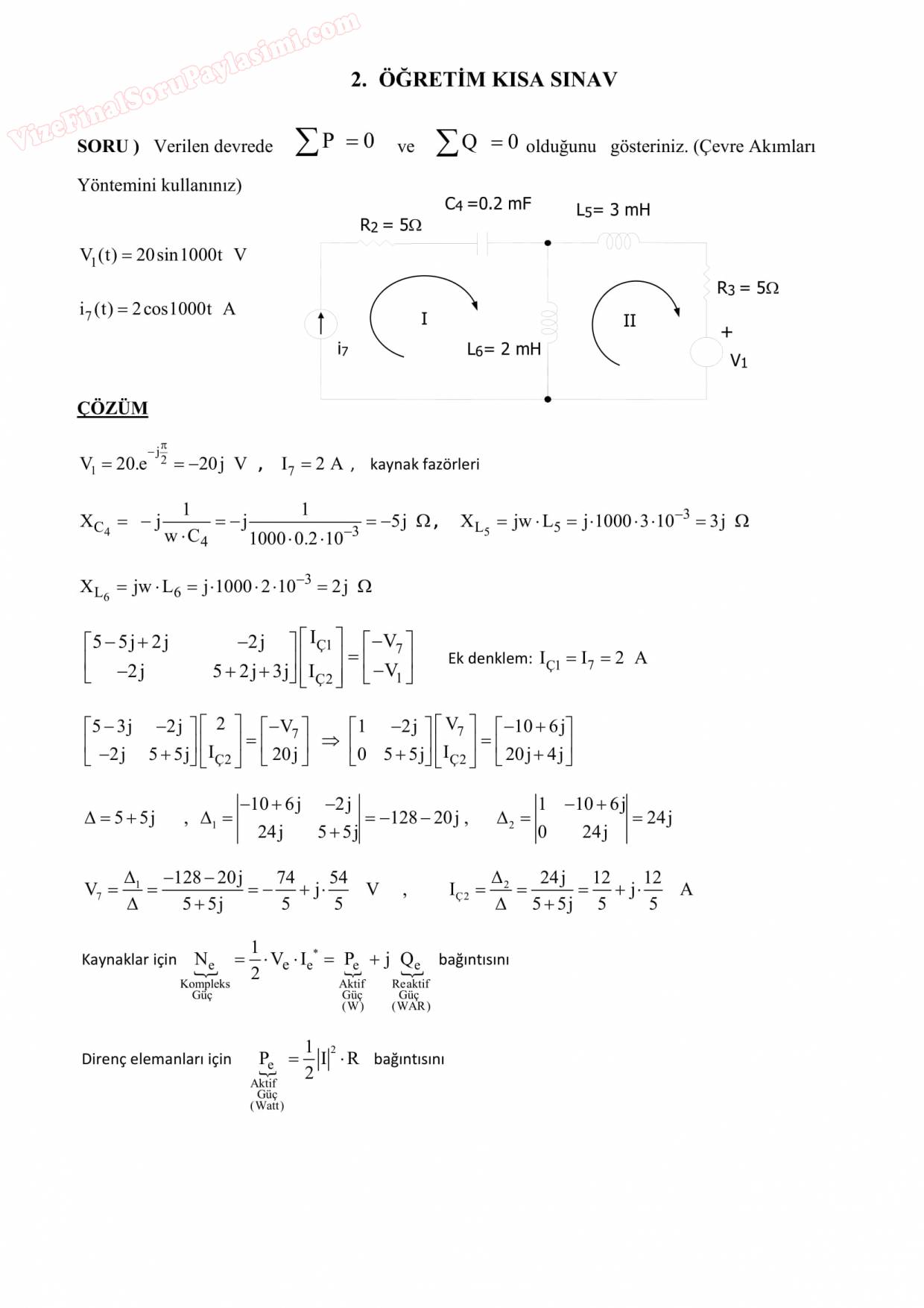 Vize ve Final Soruları / Sakarya Üniversitesi / Elektrik Devreleri-2