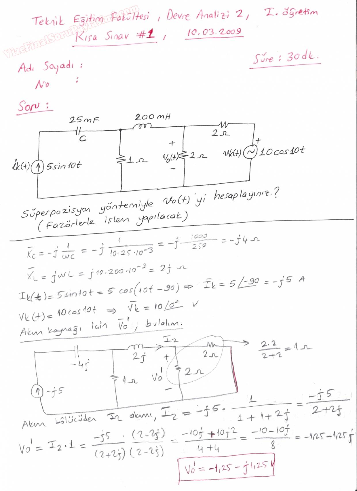 Vize ve Final Soruları / Sakarya Üniversitesi / Elektrik Devreleri-2