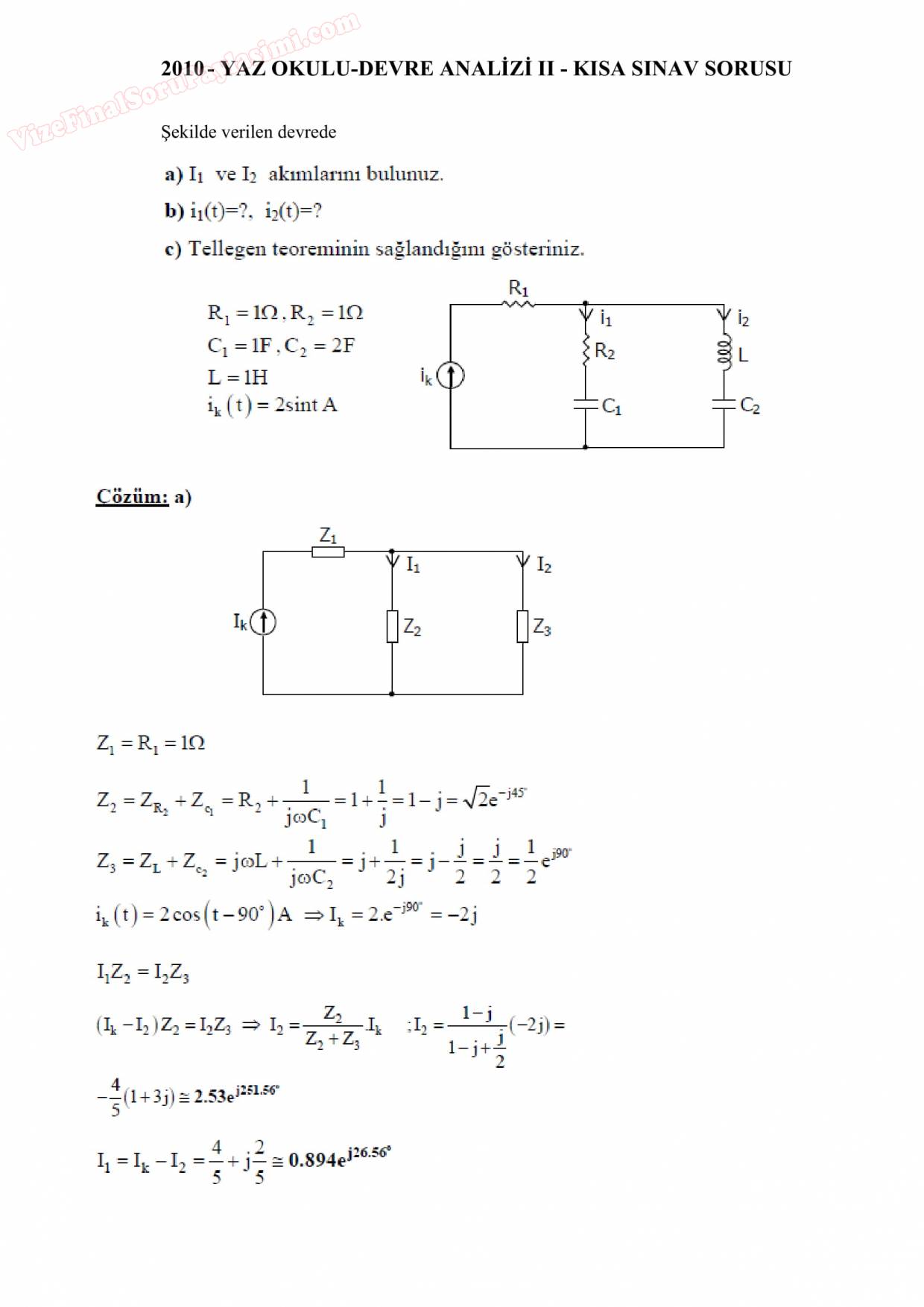 Vize ve Final Soruları / Sakarya Üniversitesi / Elektrik Devreleri-2