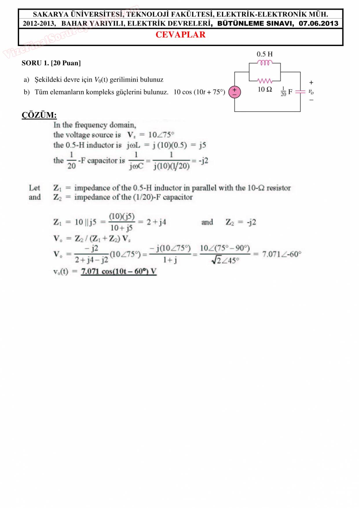 Elektrik Devreleri-2 Bütünleme Soruları Ve Cevapları-2013 24-04-2015, 19:38